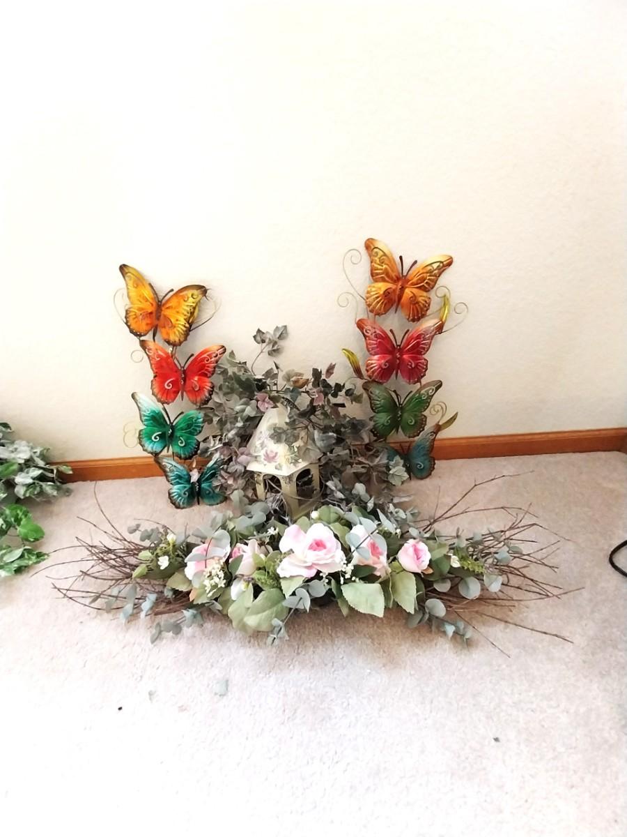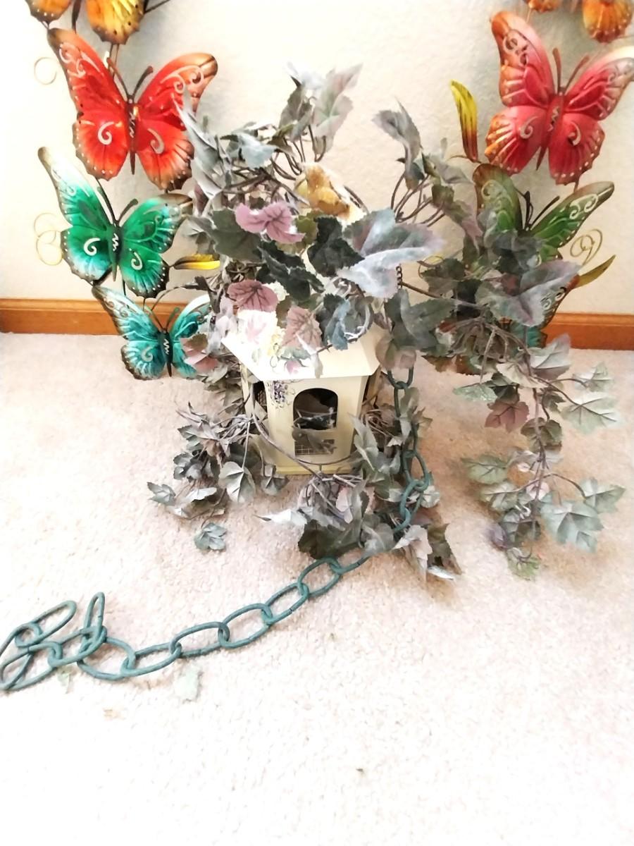 BIRDHOUSE-TWO METAL BUTTERFLY DECOR-FLOWERS