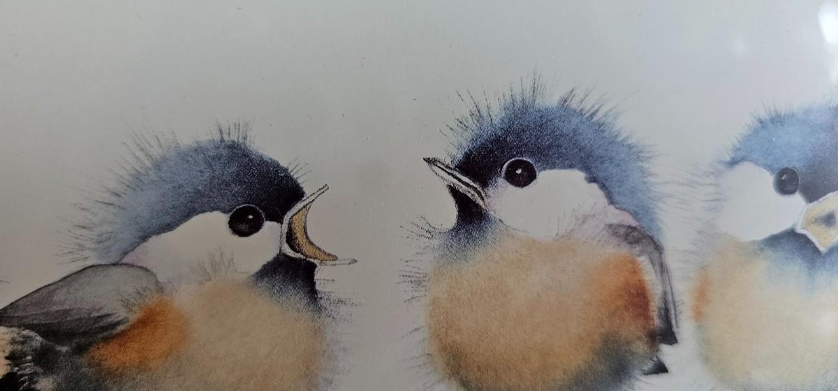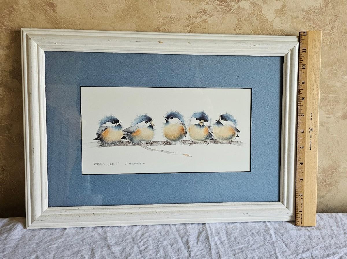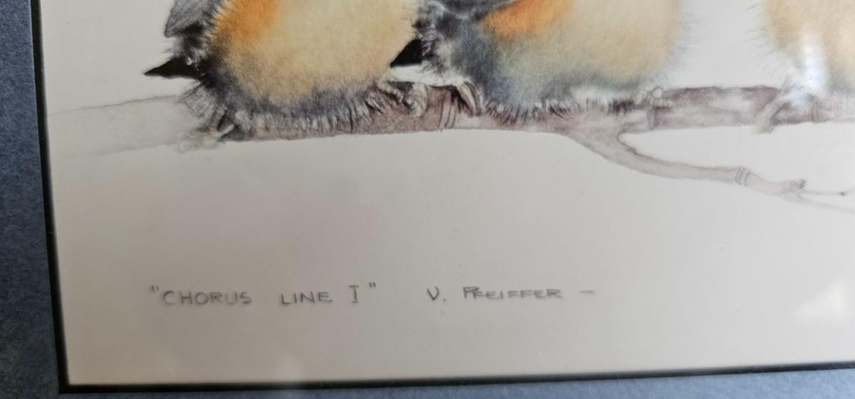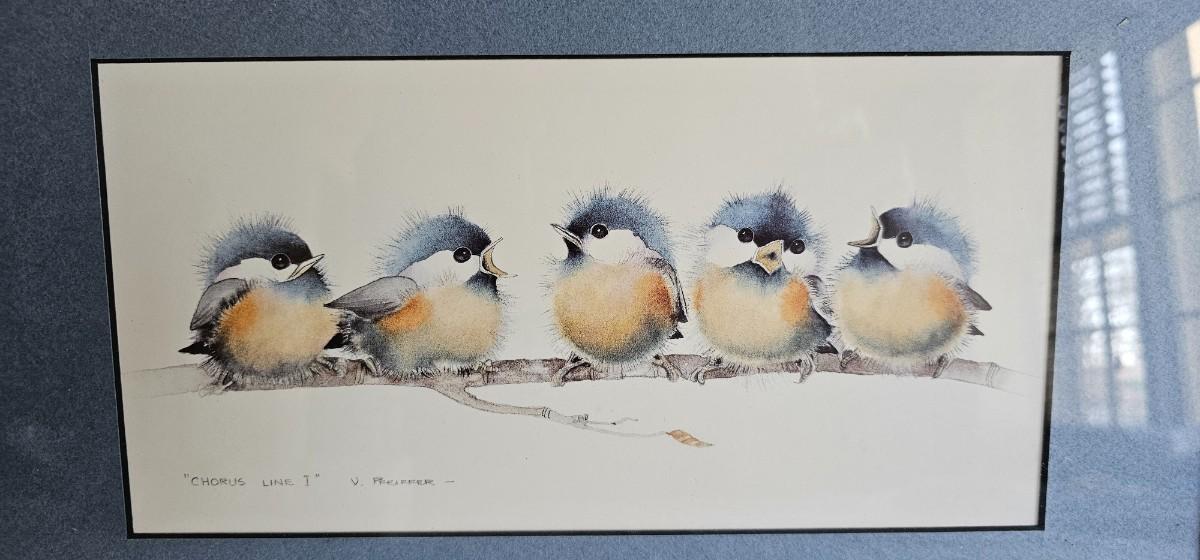 Birds "Chorus Line I" signed V. Pfeiffer lithograph vintage frame