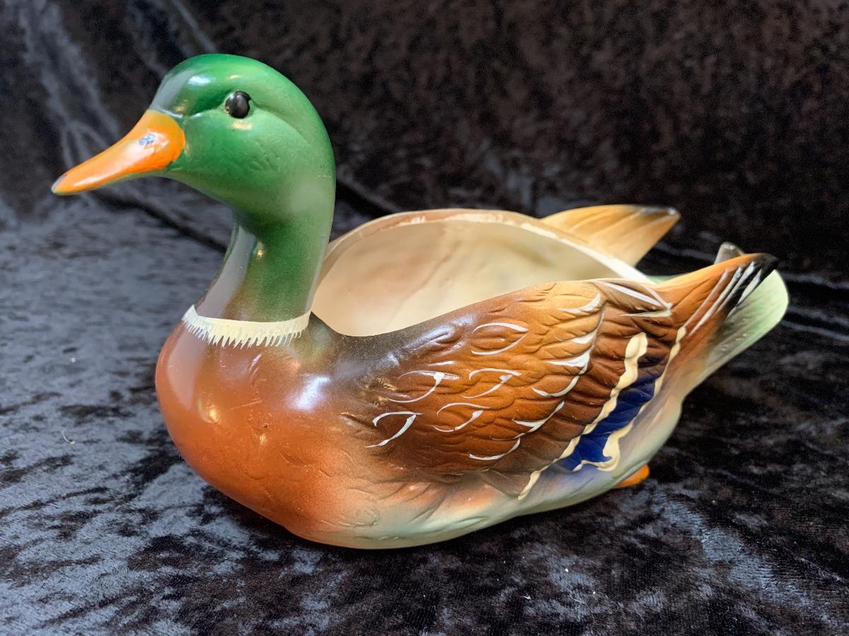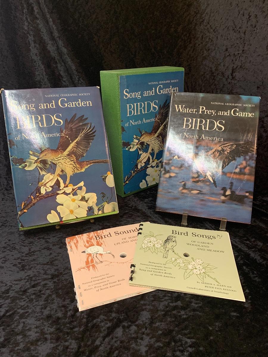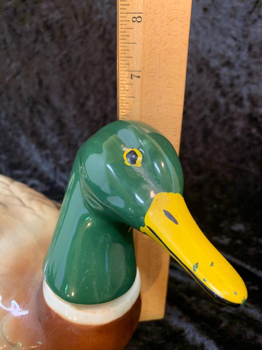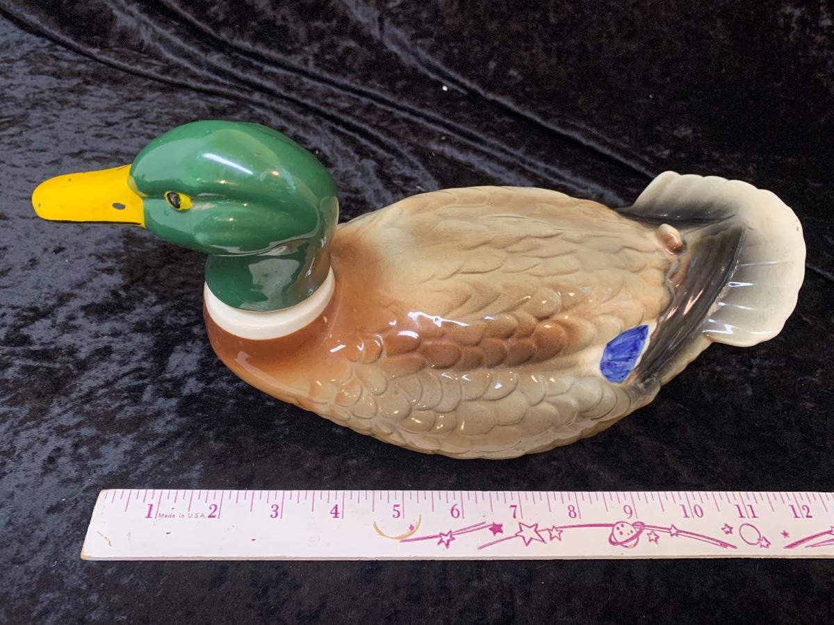 Very interesting book that includes vinyl records to learn different bird sounds. One duck is a Napco floral vase made in Japan and the other an empty 1969 Ballentines liquor decanter.