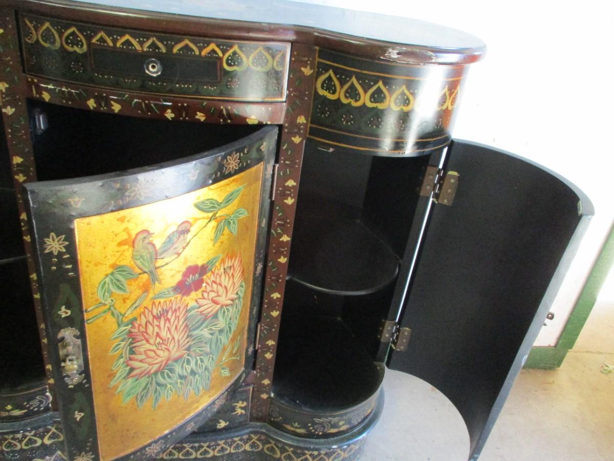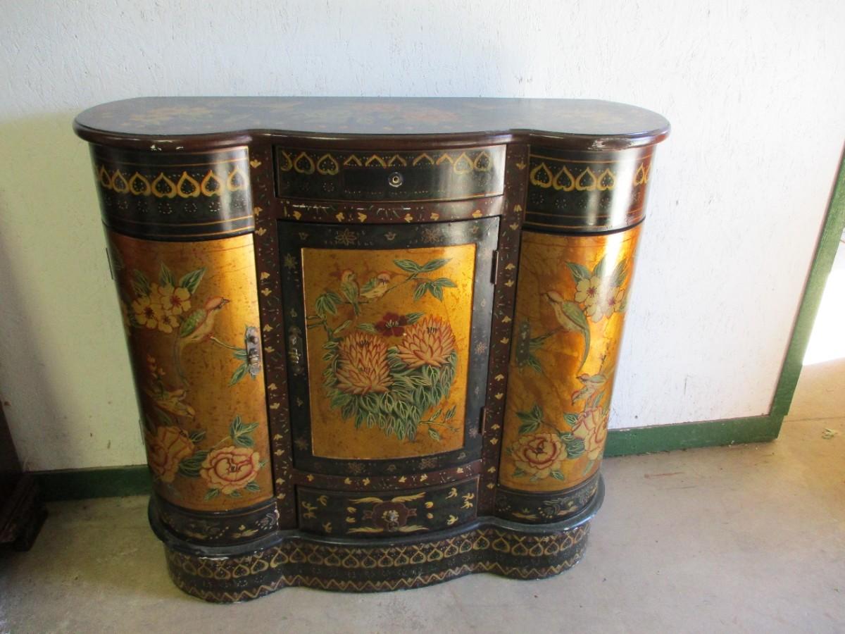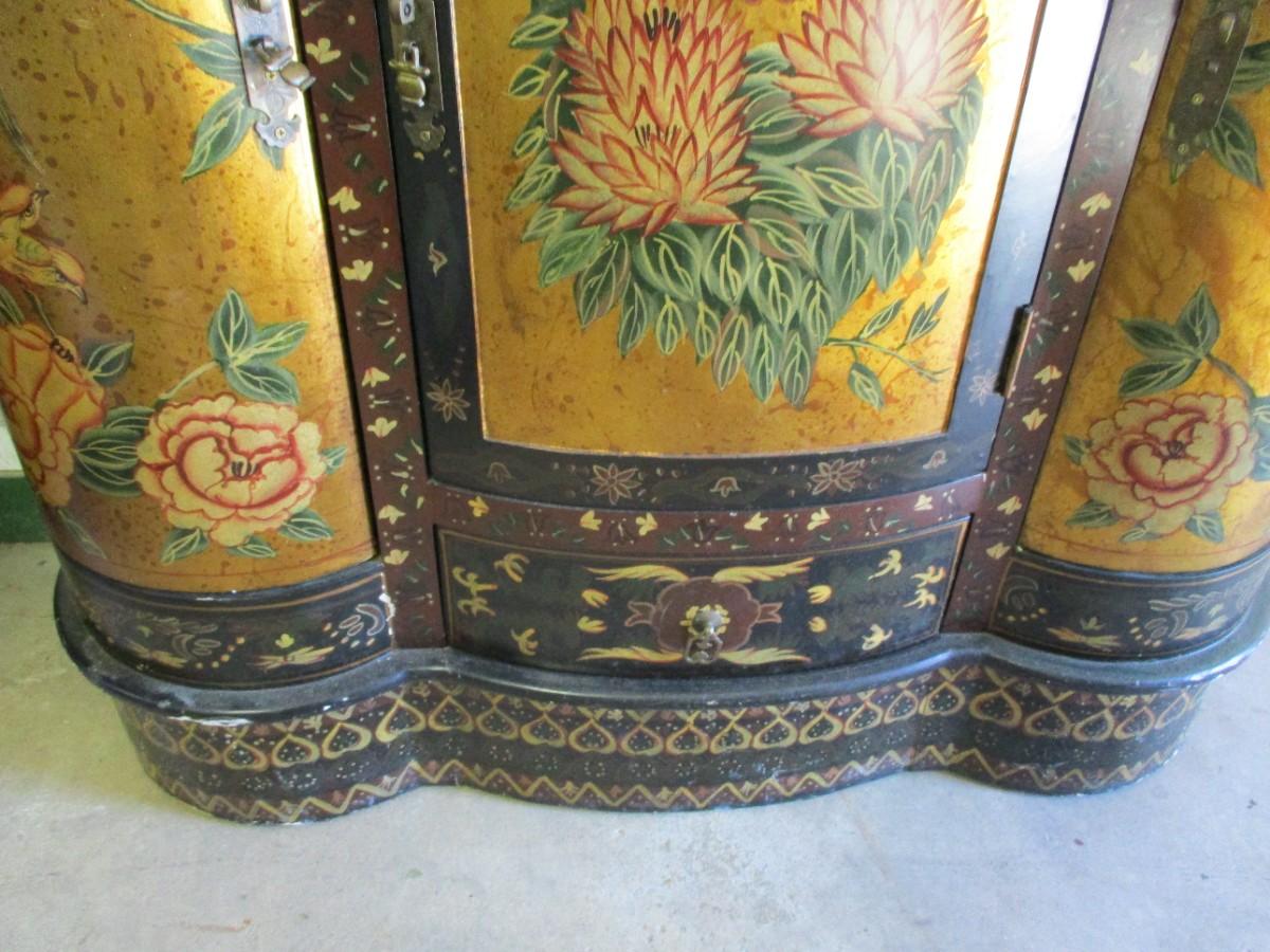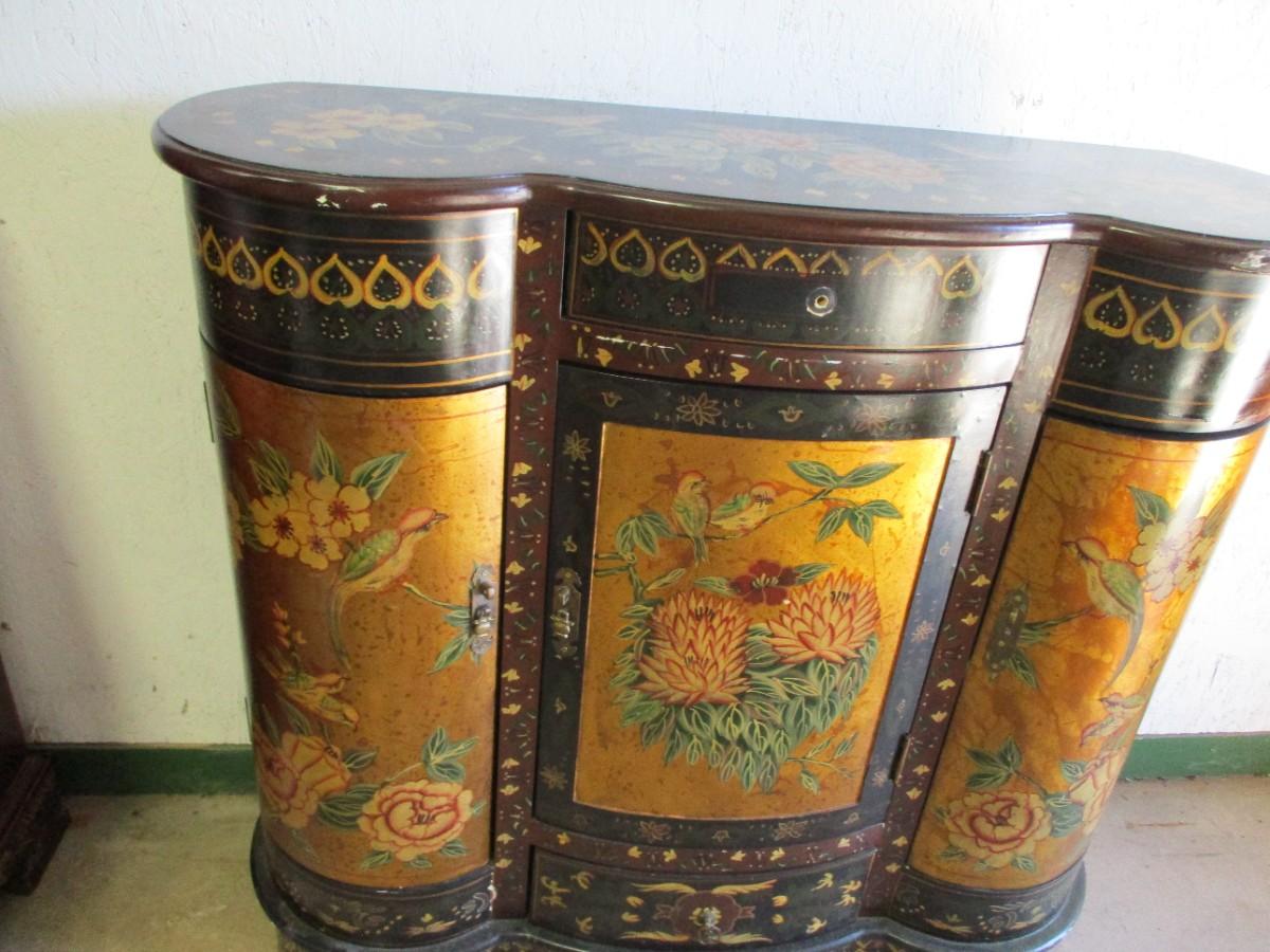 Birds & Flowers Lacquer Cabinet With Drawers