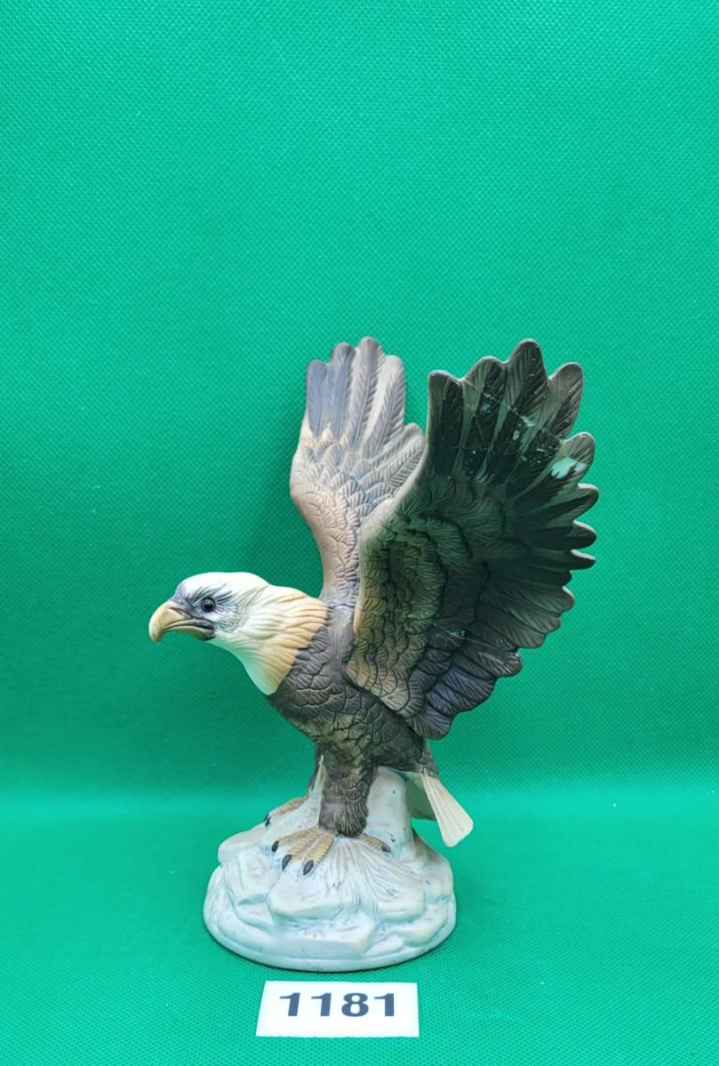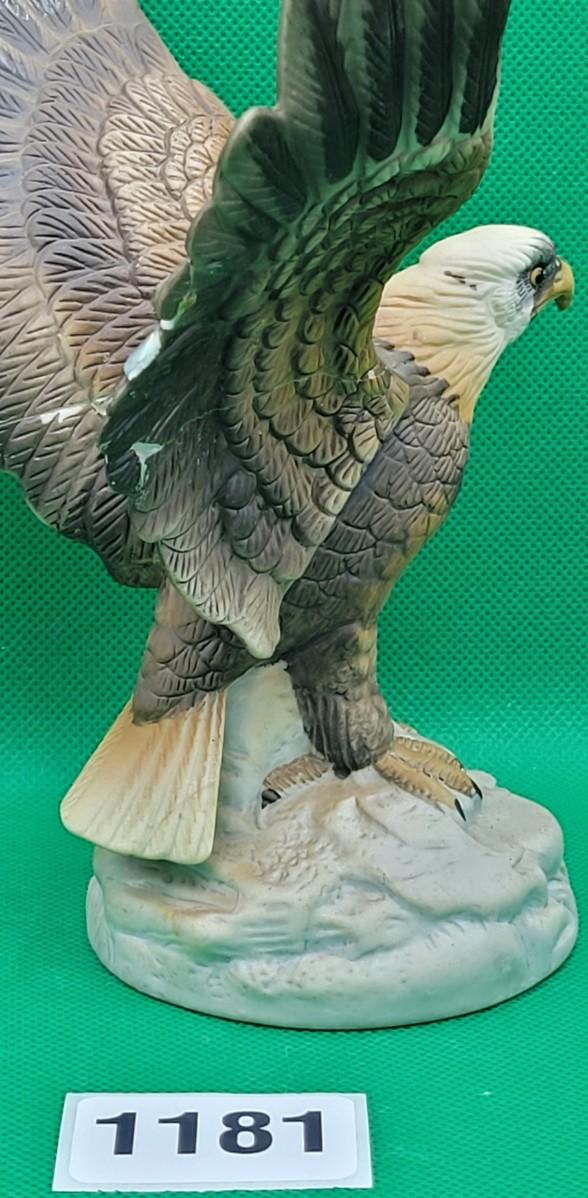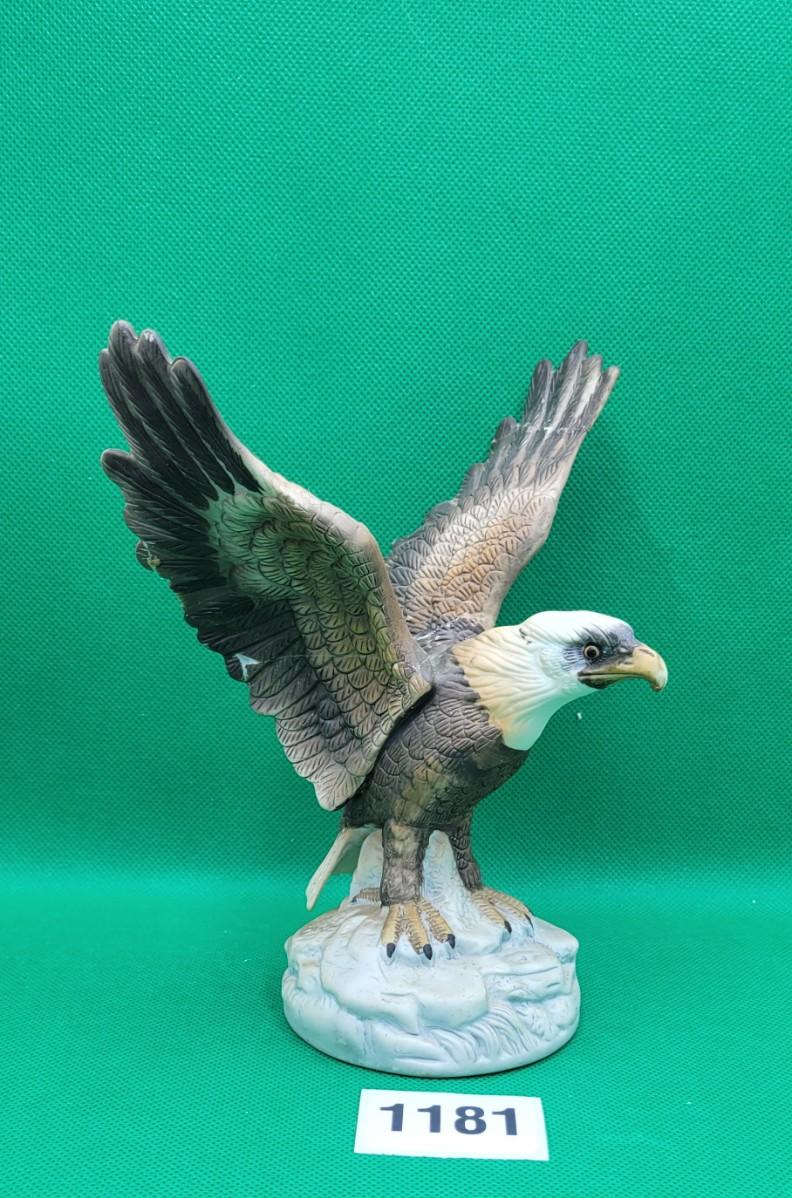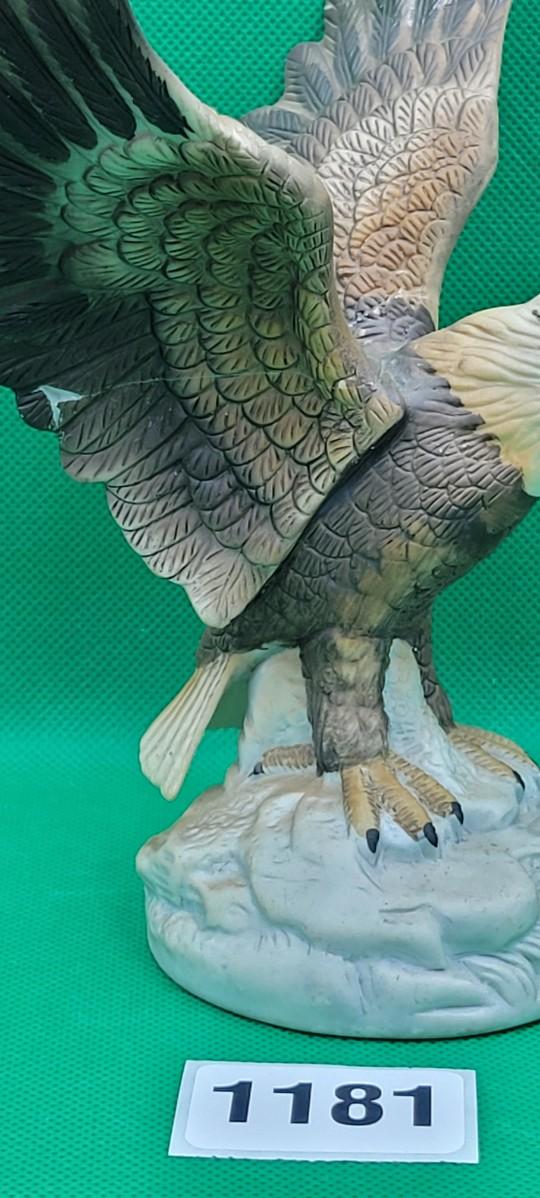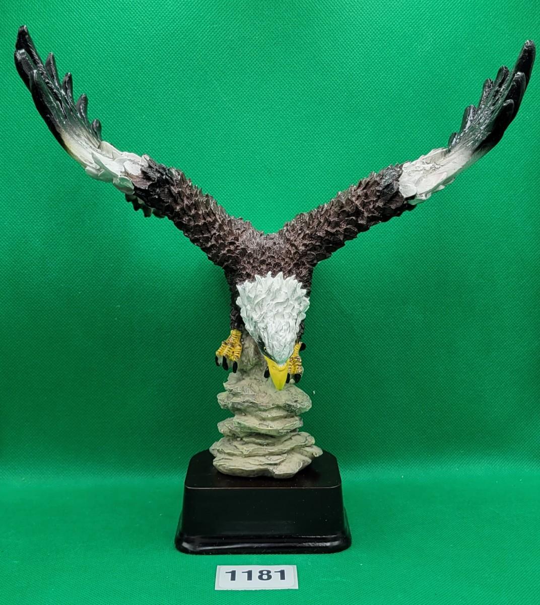 Eagle is in great condition and is larger. We had taken the photos inside of our 16"x16" light box and the eagle about reached the top of it. We didn't get actual measurements on it. It will come in its own styrofoam box.