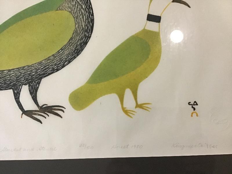 “Birds of Kingait” Limited edition 28/50. Dorset 1980. Kingmeata. Stonecut and stencil. Measures 28” x 22”.