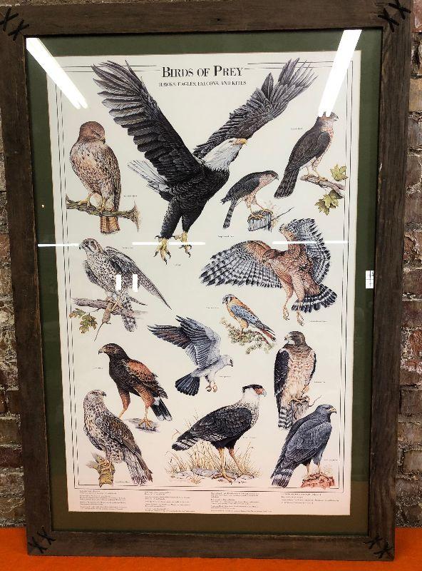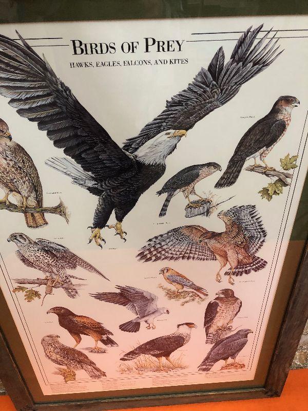 Excellent condition on this large 42 x 30" framed poster print of Birds of Prey....