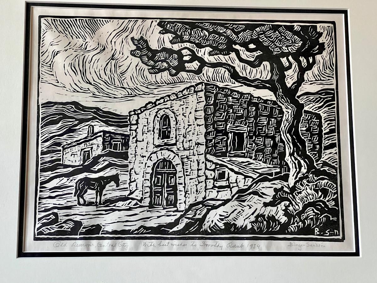 Birger Sandzen RARE BLOCK PRINT Old Reservoir, Central City