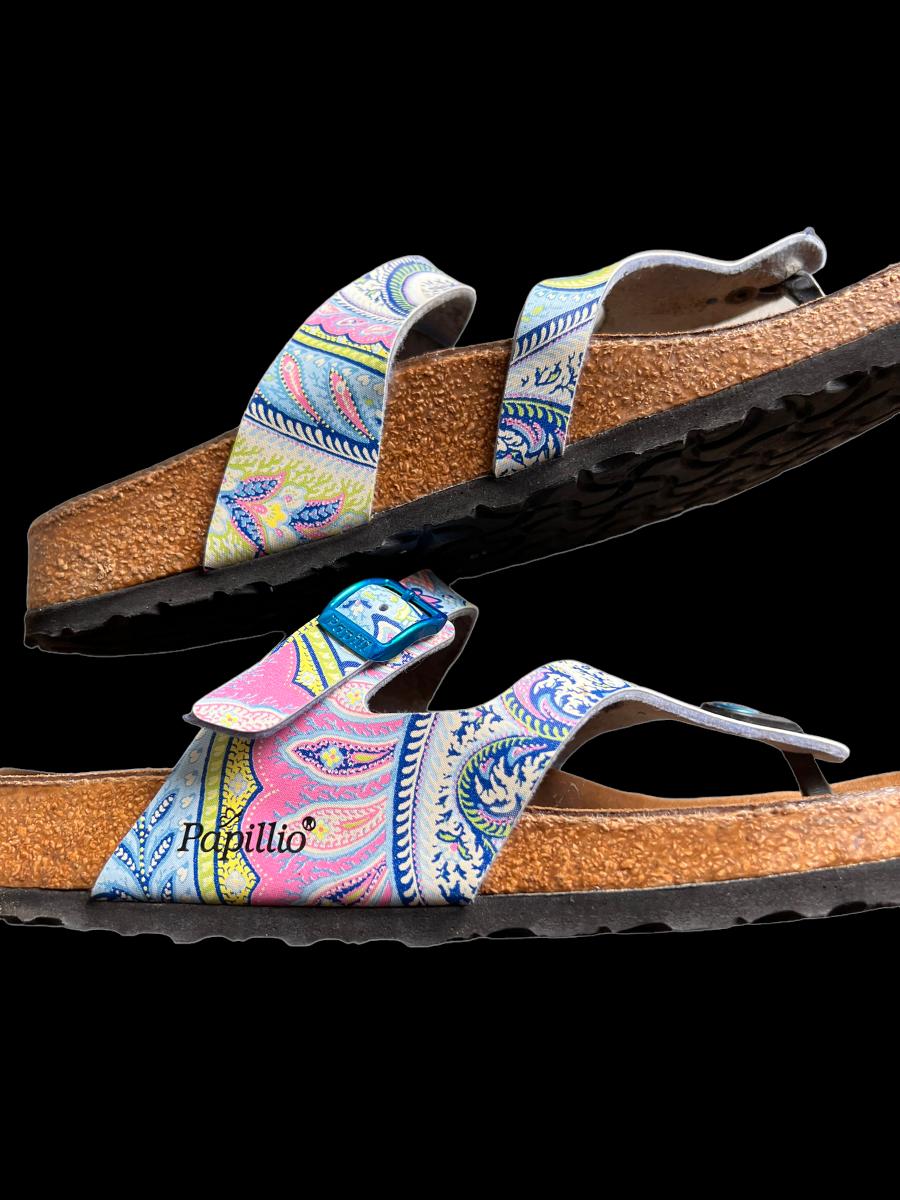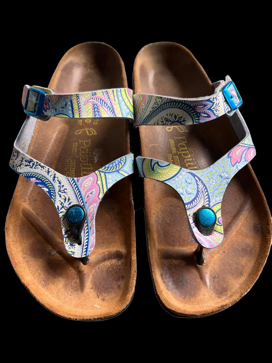 Details: thong with an individually adjustable metal tongue buckle. Seem to be in good worn condition. See all pics