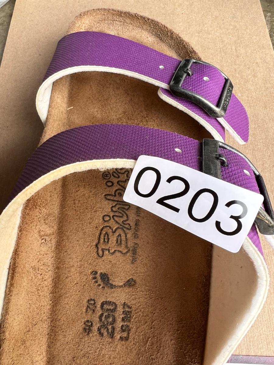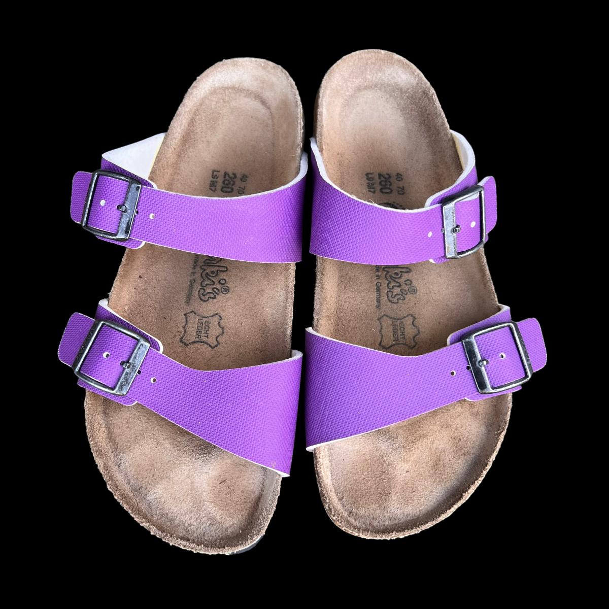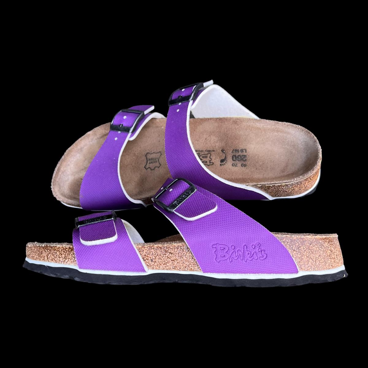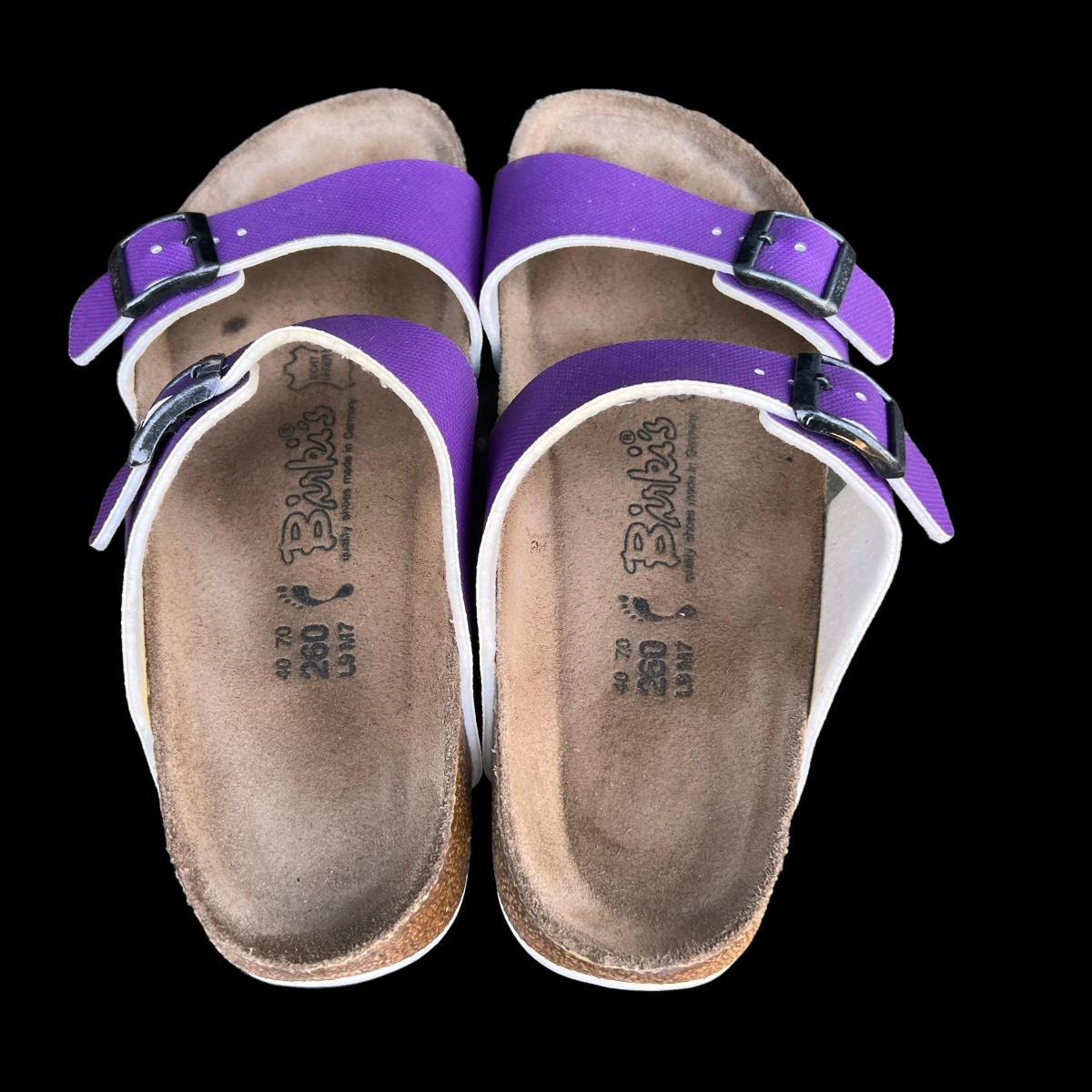 Birko-Flor Birkenstock sandals in Purple. Gently worn condition if worn at all. Please look at all the pictures closely to make your own assessment.
