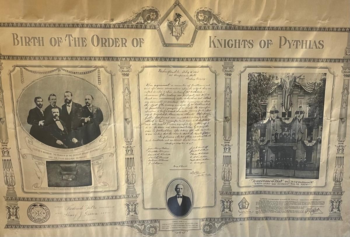 Description: BIRTH OF THE ORDER OF KNIGHTS OF PYTHIAS/ LithographMeasurement approximate: 32 x 23 InchesMaterial: Paper