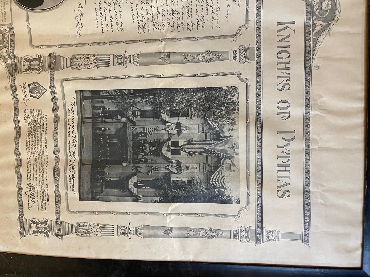 Description: BIRTH OF THE ORDER OF KNIGHTS OF PYTHIAS/ LithographMeasurement approximate: 32 x 23 InchesMaterial: Paper