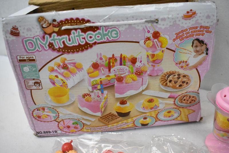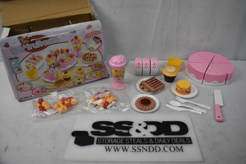 Birthday Cake Play Food Set Pink 75 Pieces Plastic Toy Pretend Play