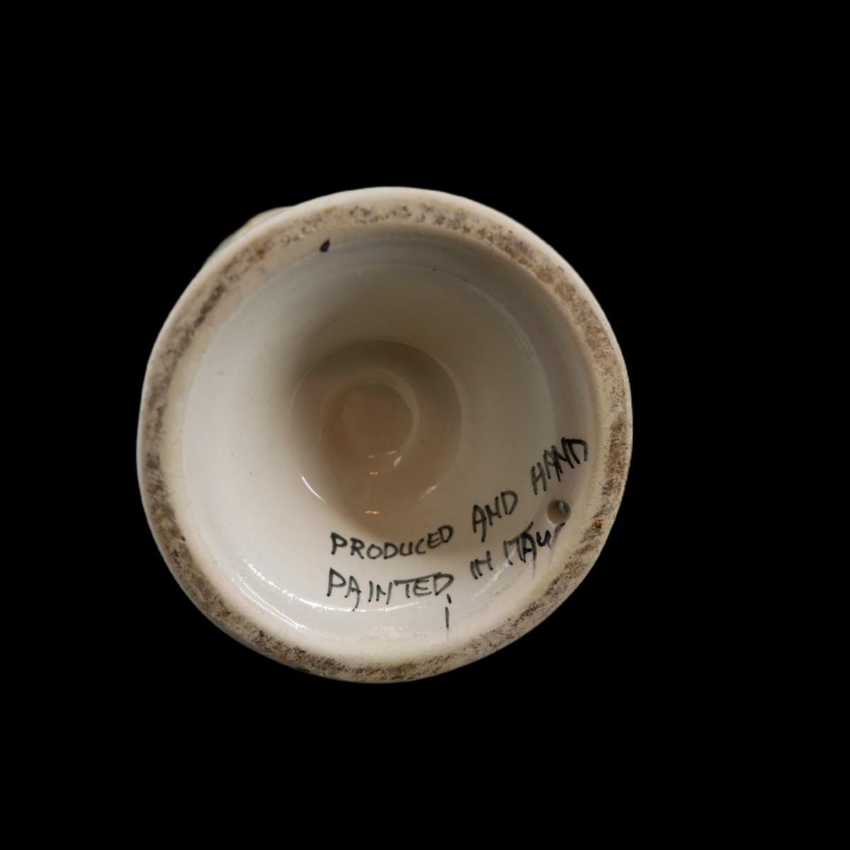 Bischoff cherry hand painted in Italy wine decanter vase. Bottle is empty and without cork. Slight chipping on rim. Measures L 5" x H 11.5", weighs 1 lb 5 oz. (D39)