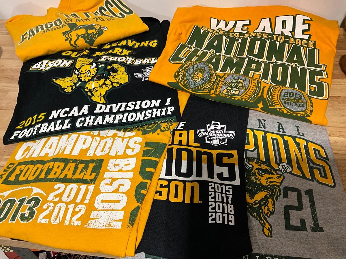 Majority are the championship tee shirts. Sizes are 2x and 3x