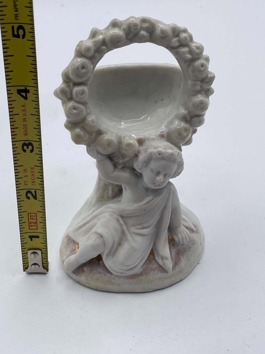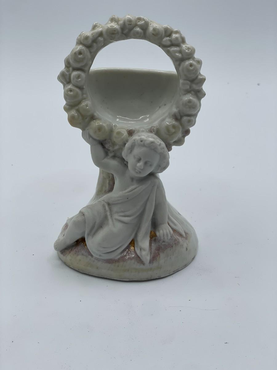 Bisque & Porcelain Pocket Watch Holder; 5.5" x 3", 1.75" opening