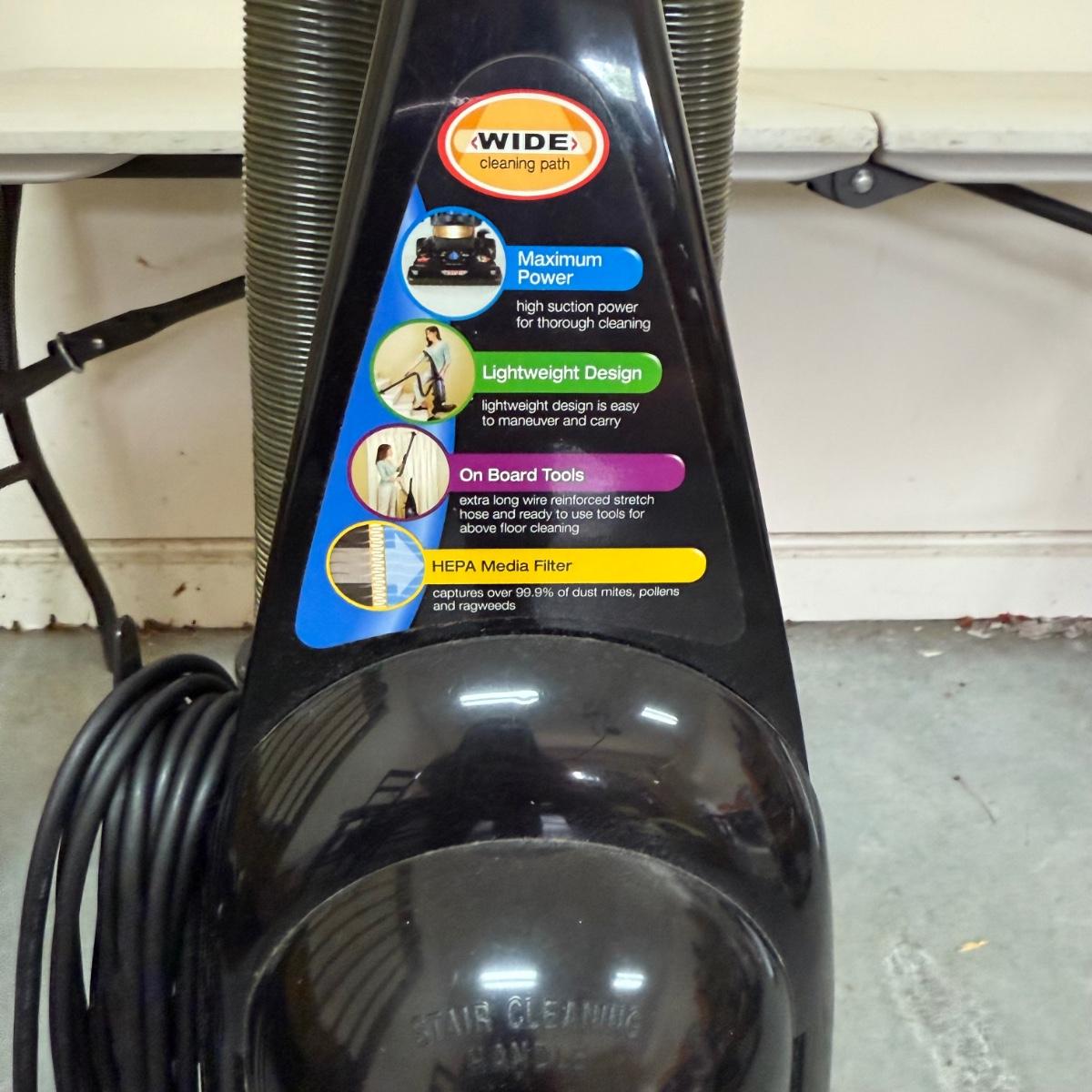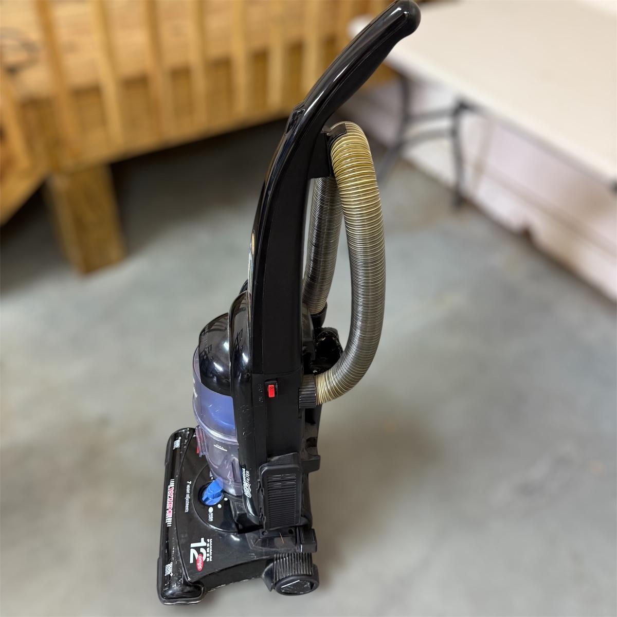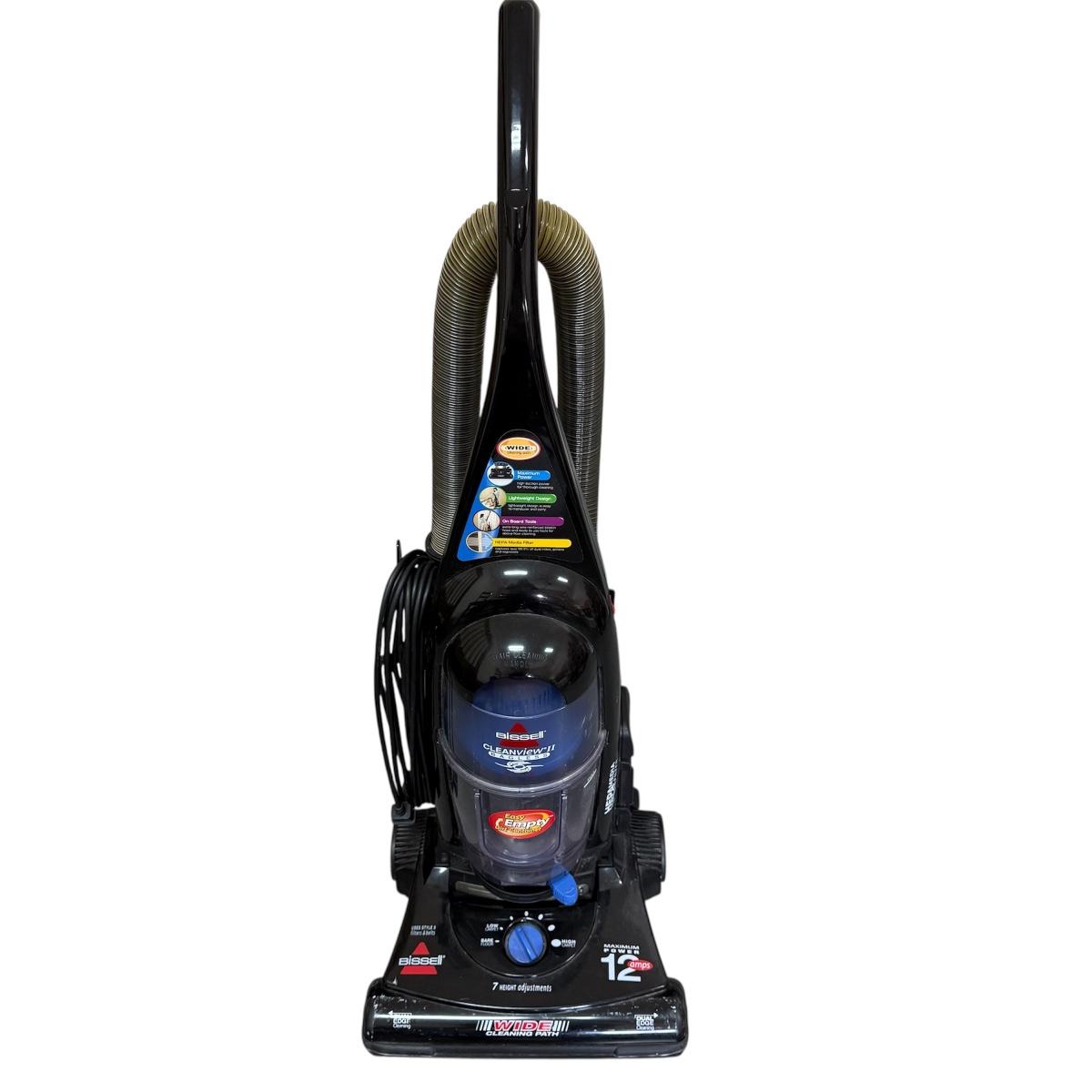 This lot contains a Bissell Cleanview II Bagless Plus vacuum. This upright vacuum has a canister you empty and seven height adjustments. Item powers on when plugged in and measures 14” x 12” x 42”H. This item also comes an extender wand and an attachment. Local pick up only.