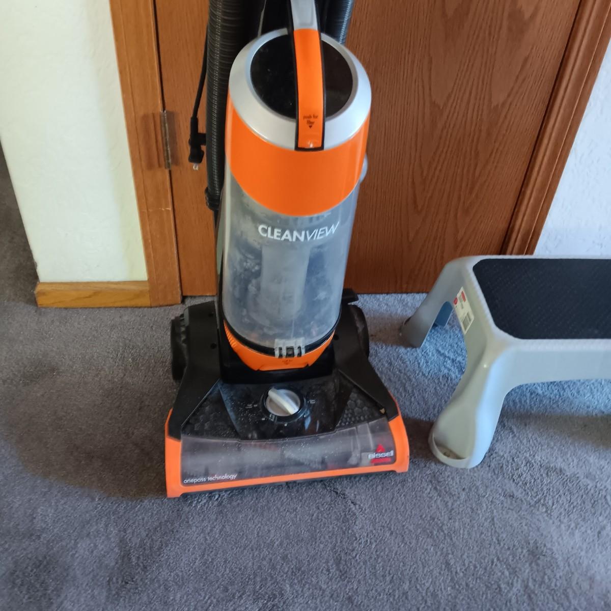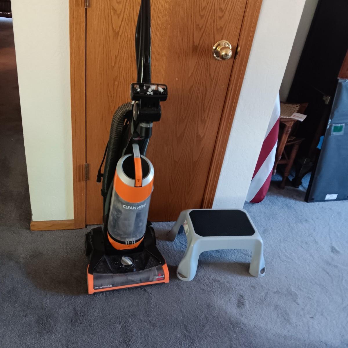 BISSELL BAGLESS VACUUM AND A STEP STOOL