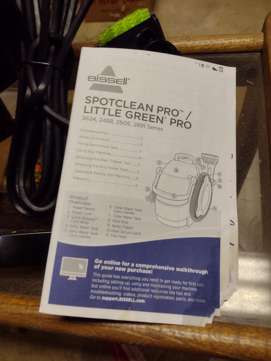 Bissell Little Green Pet Pro Portable Carpet Cleaner. Item is untested.