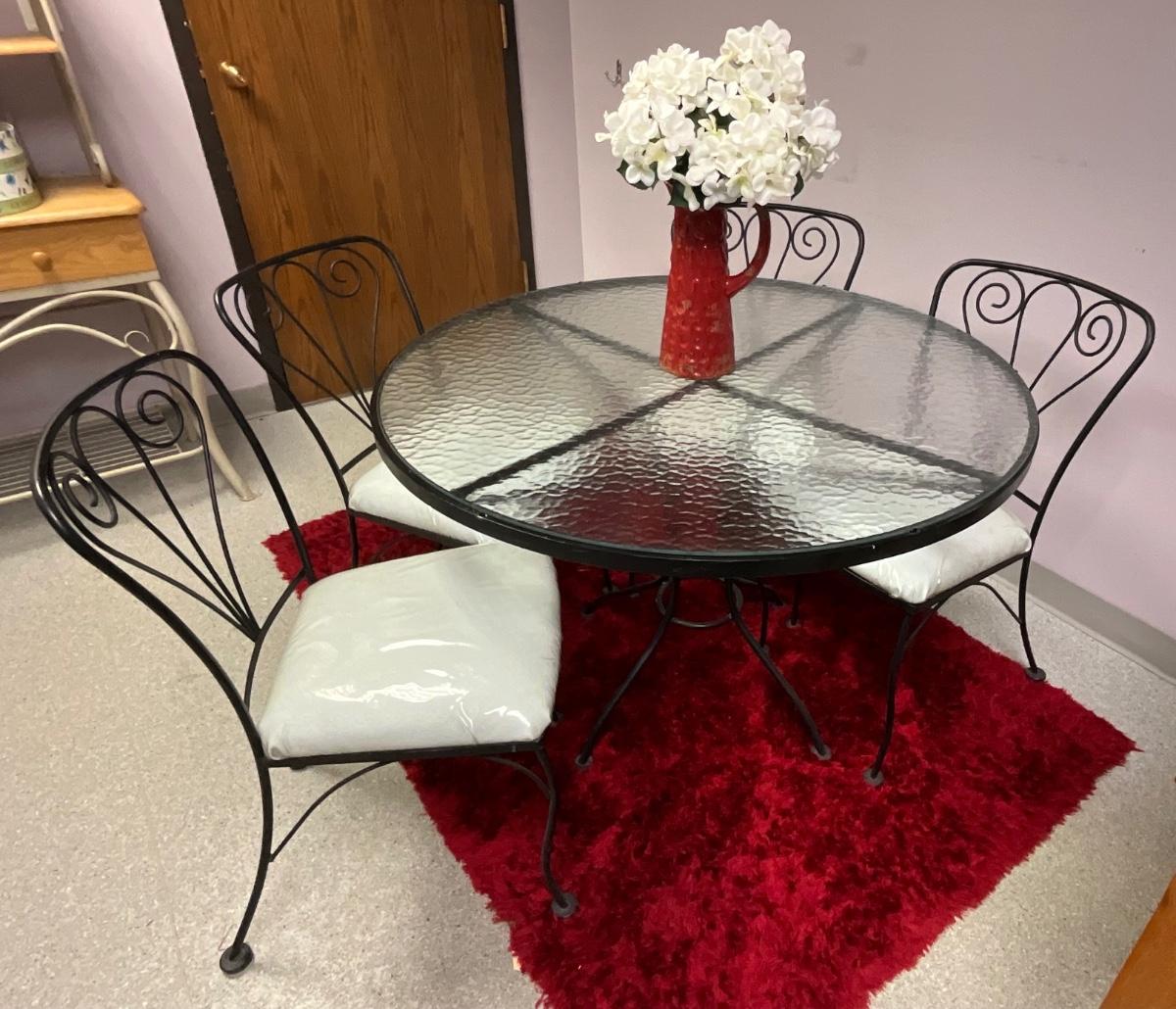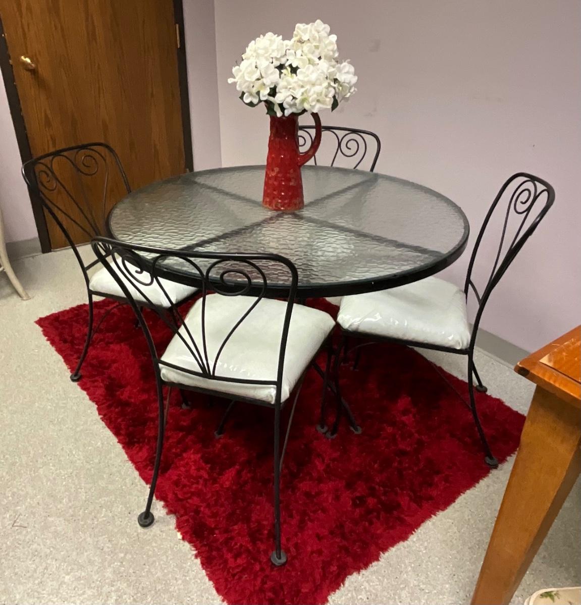 Bistro Round 42in Table With 4 Chairs and Red Rug