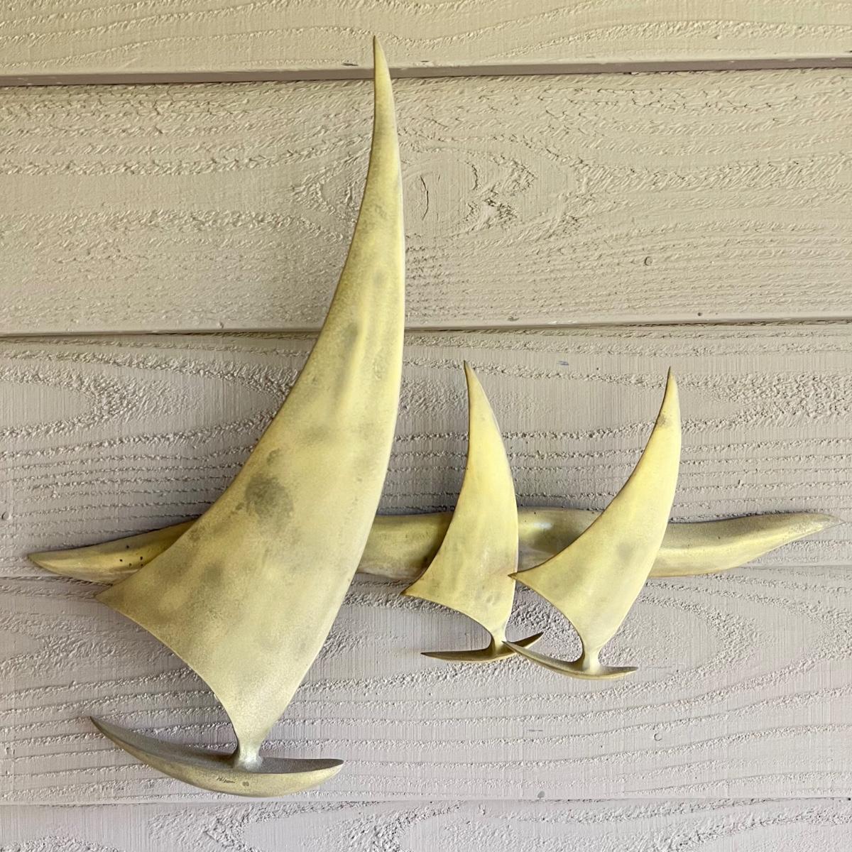 Bitano (Signed) Three Sailboat Brass Hanging Wall Sculpture (2D-RG)