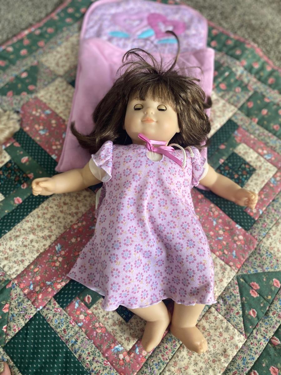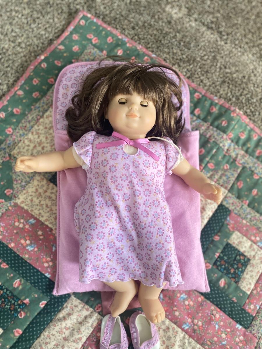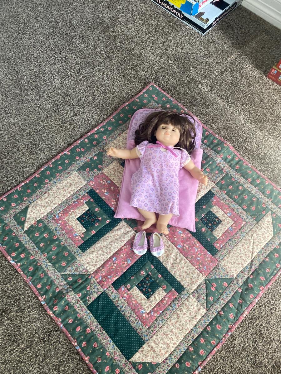 BITTY BABY AMERICAN GIRL DOLL WITH SLEEPING BAG AND A BEAUTIFUL HANDMADE QUILT