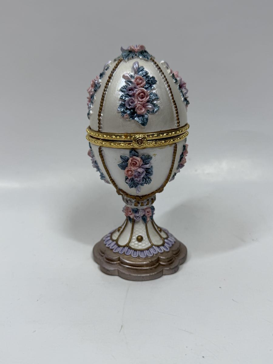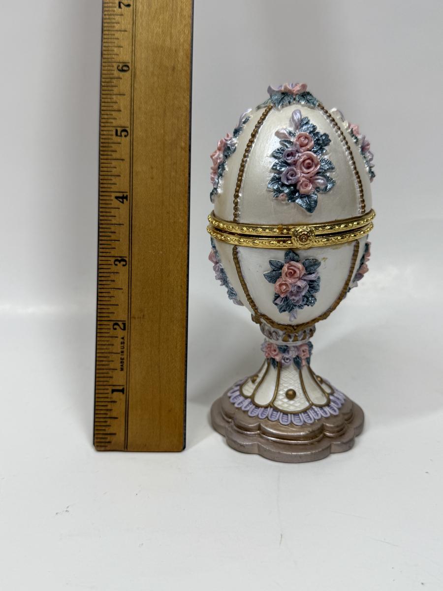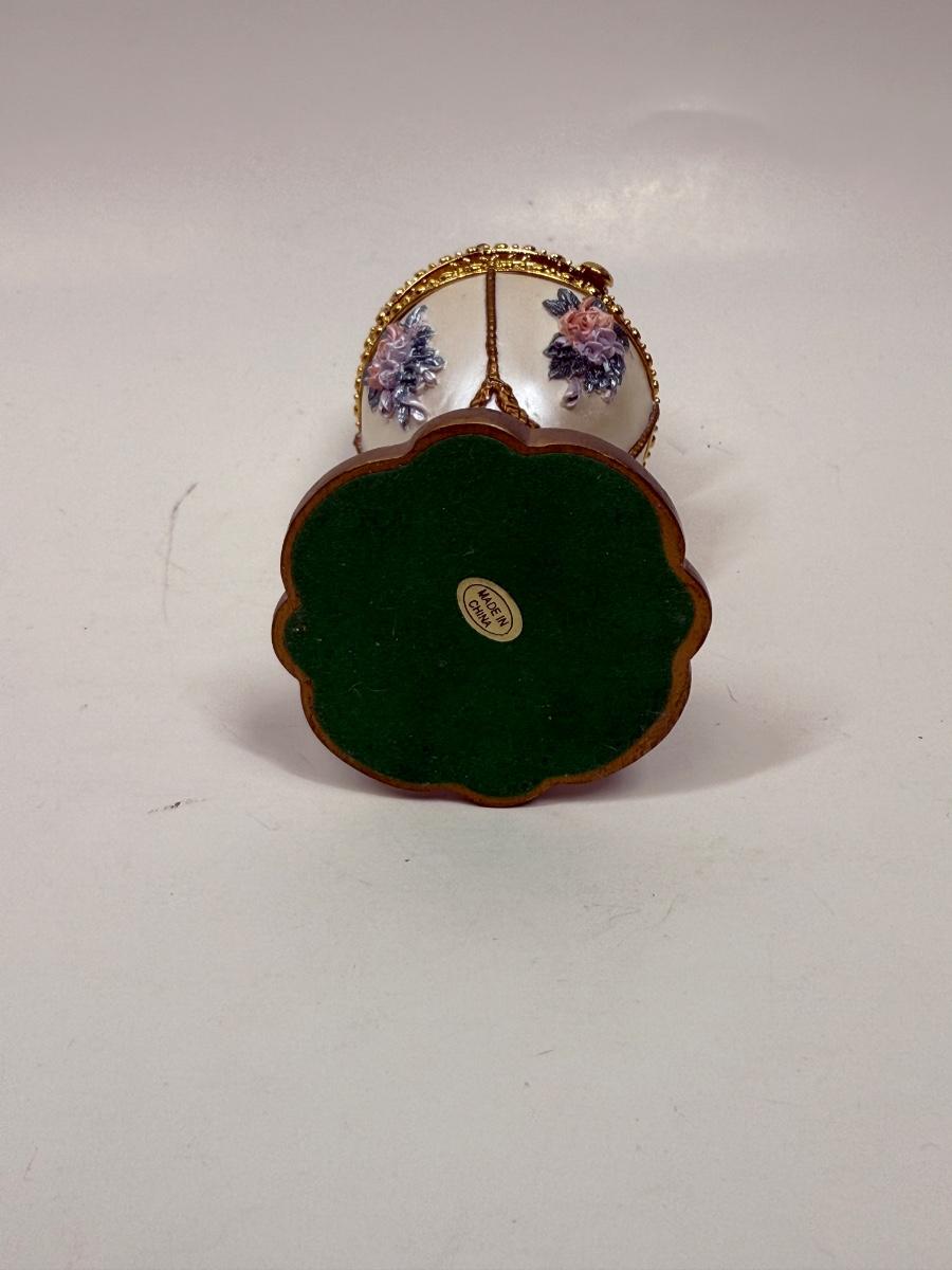 Vintage Musical Hinged Egg Trinket Box White With Delicate Flowers