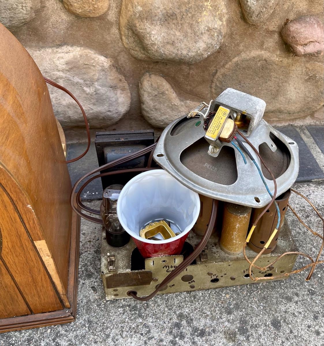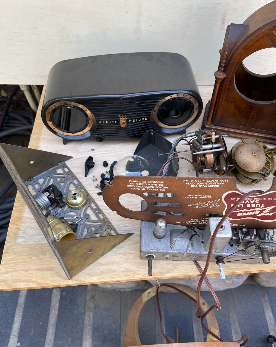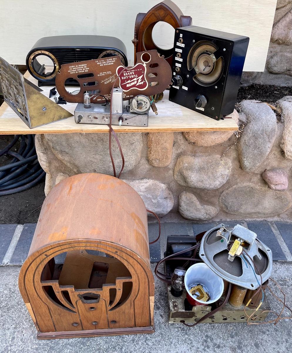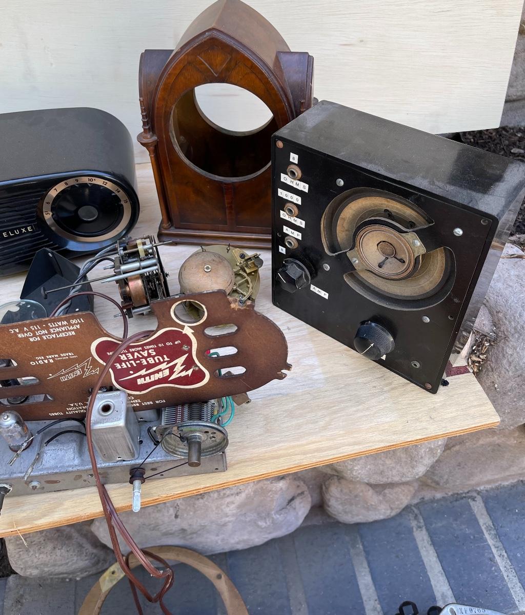 Vintage Antique Lot of Radio Parts Components, Speakers, Tubes, Wooden Shells & More