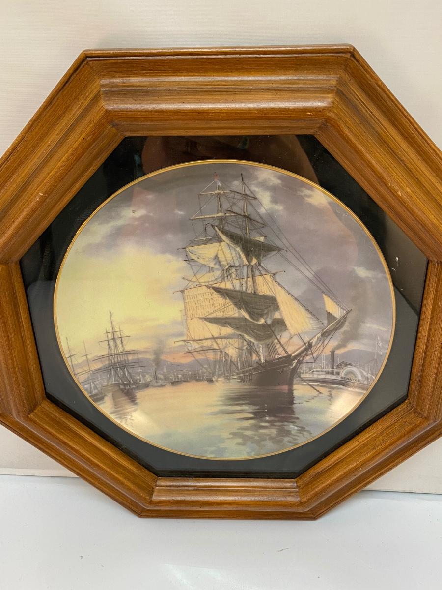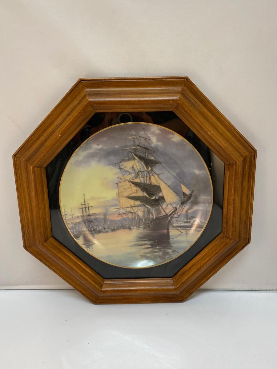 The Great Clipper Ships Plate Collection Flying Cloud Collector Plate in Octagon Frame. in good condition.