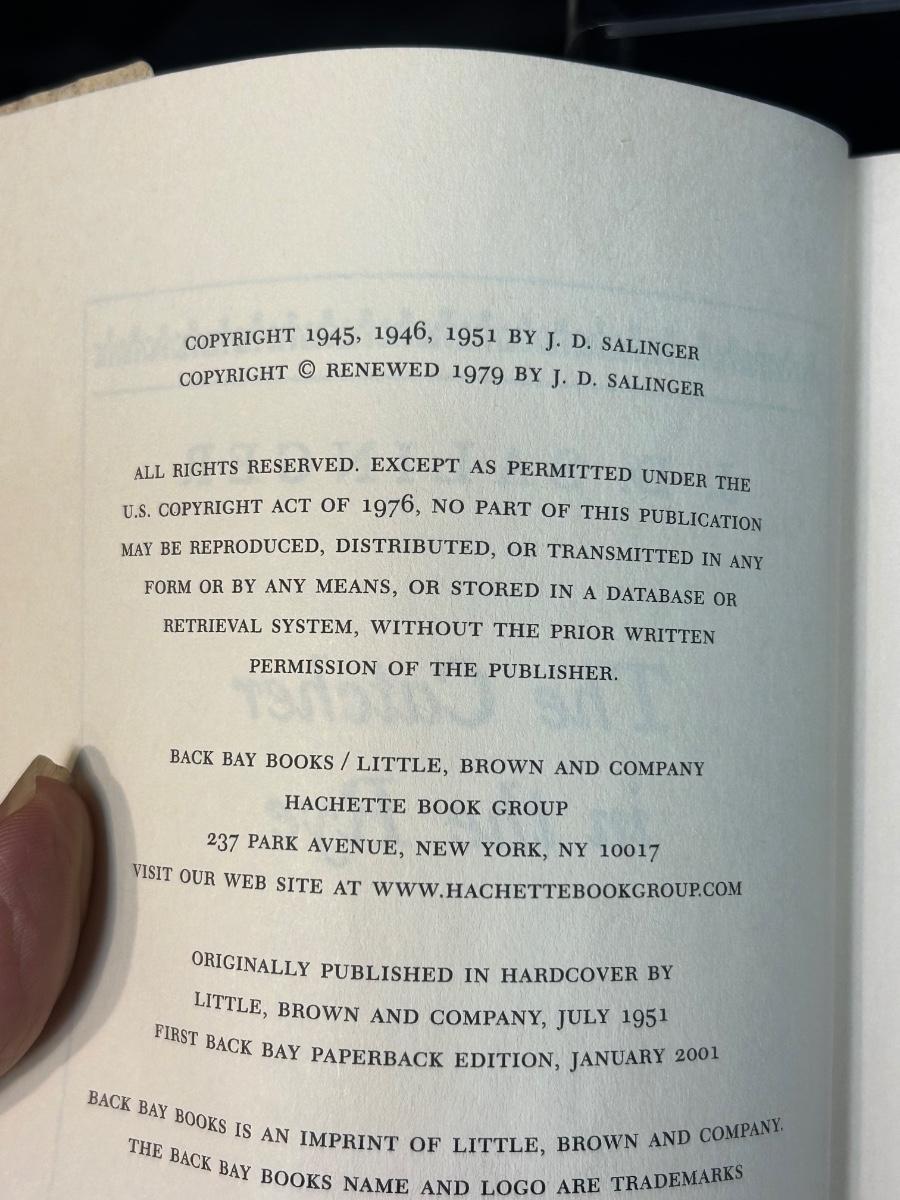 Paper Back Copy of the Catcher in the Rye JD Salinger