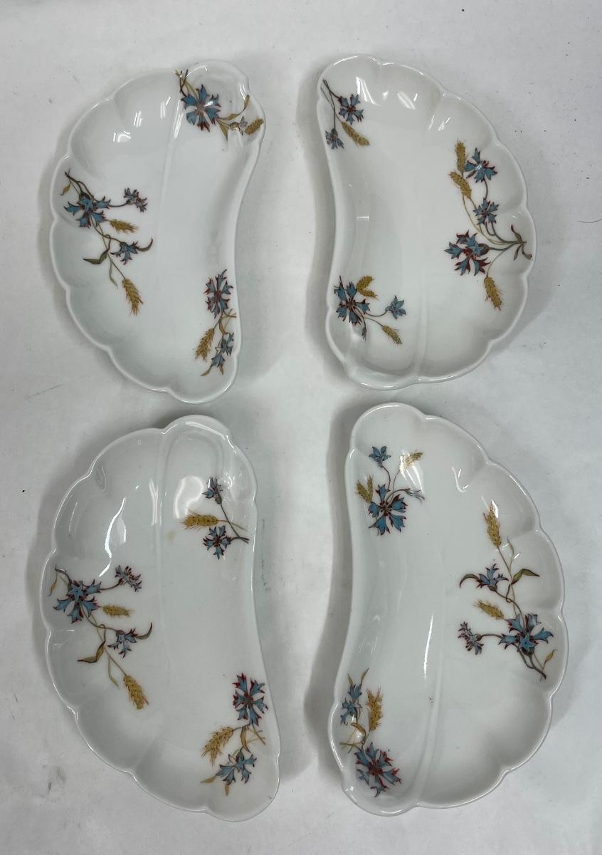Haviland & Co. Limoges Bone Dishes Set of 4 White w Blue Flowers