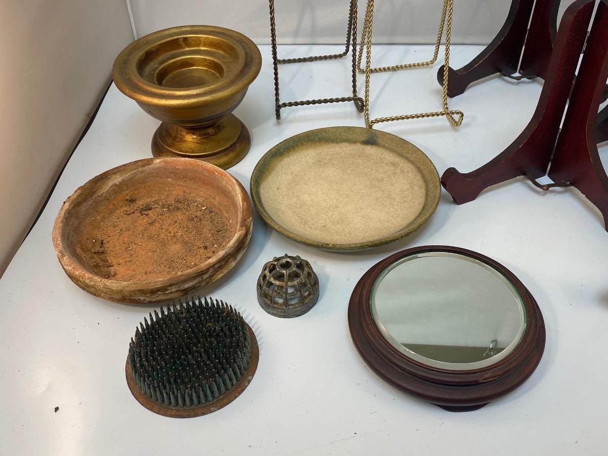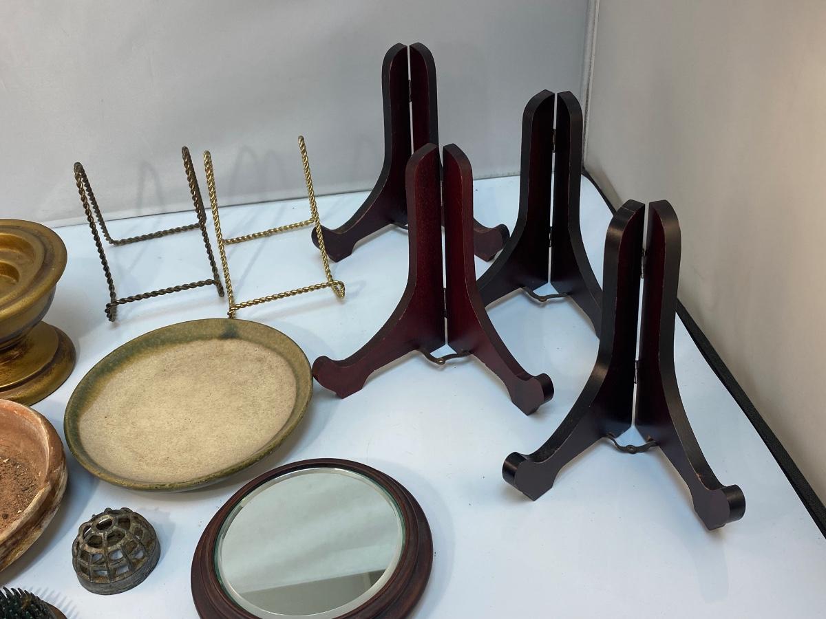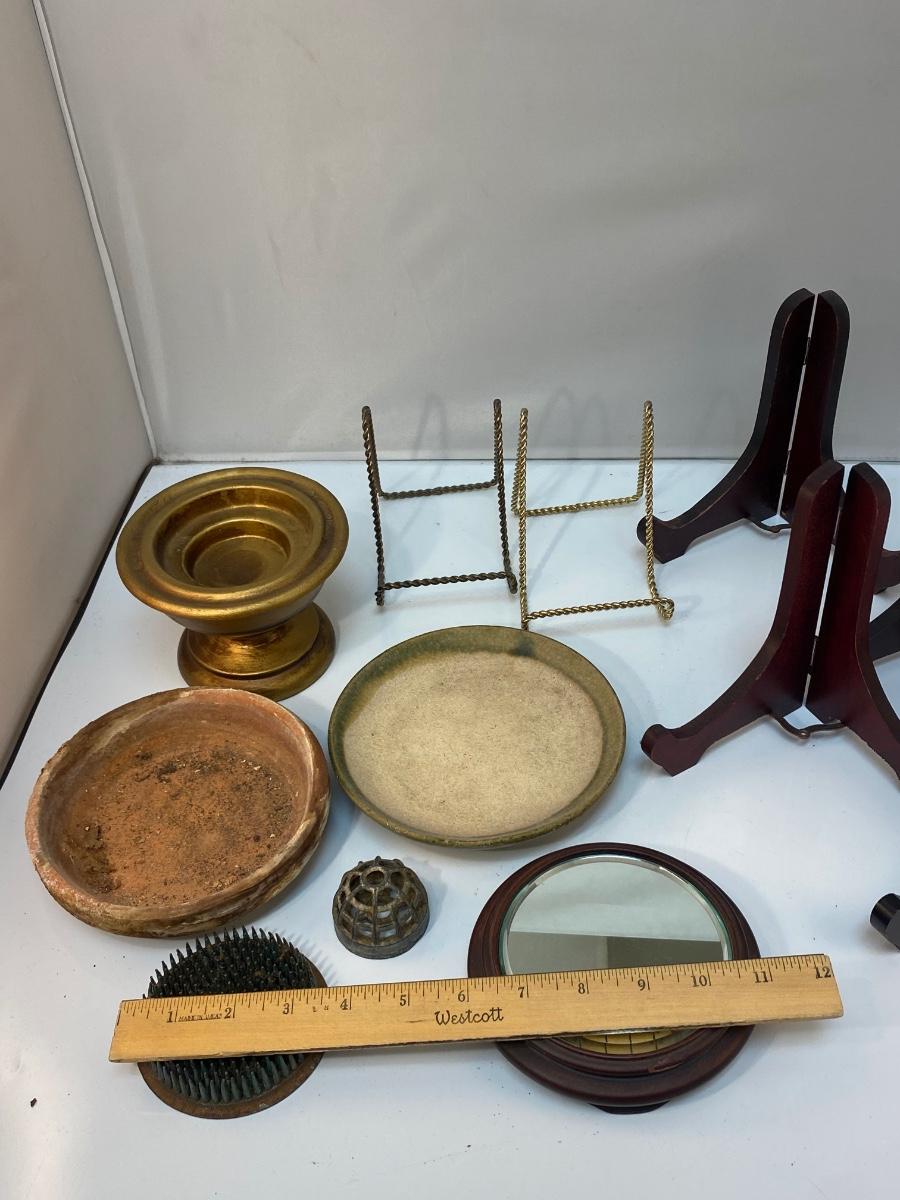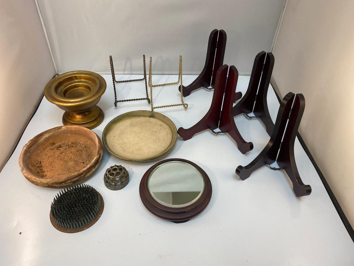 Various Plate Holder Display Pedestals Floral Frog Lot. See photos for included items.