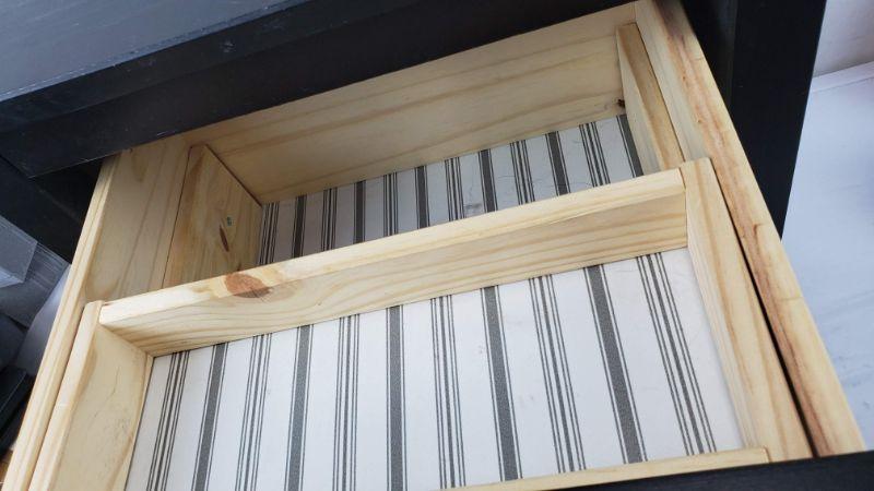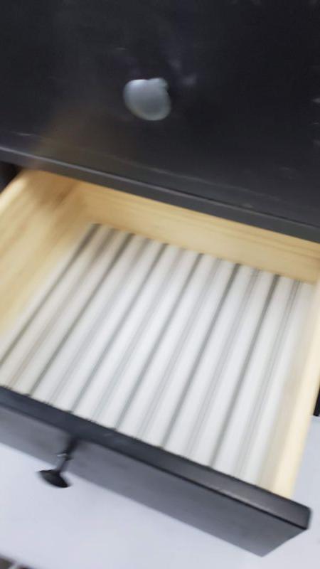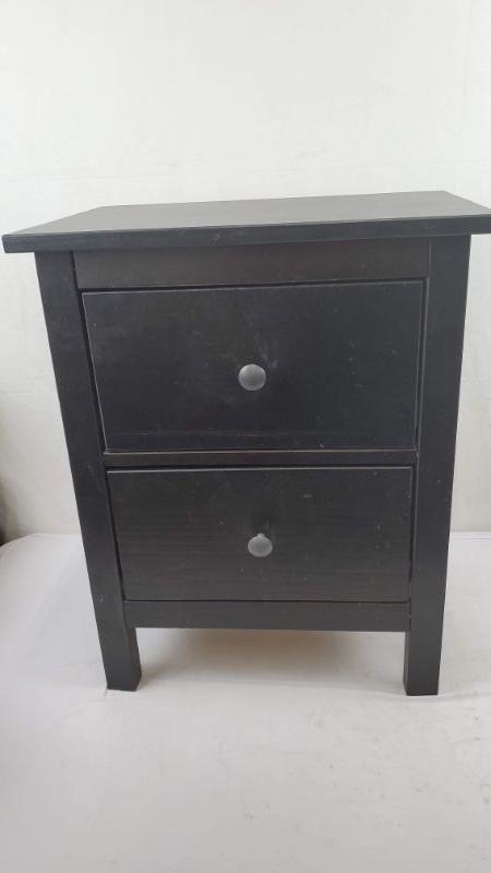 Black 2 Drawer Nightstand, Lined with Grey & White Liner