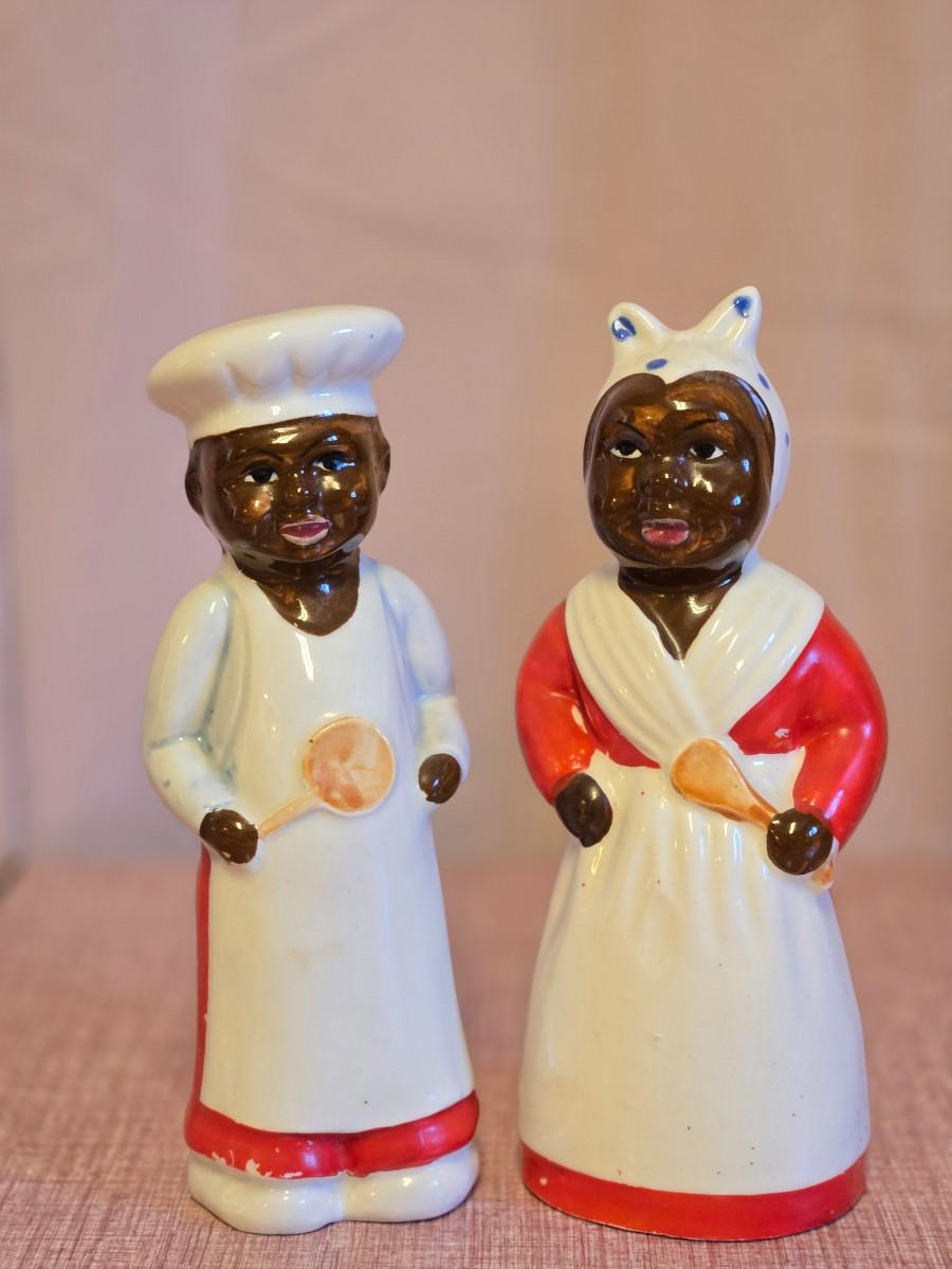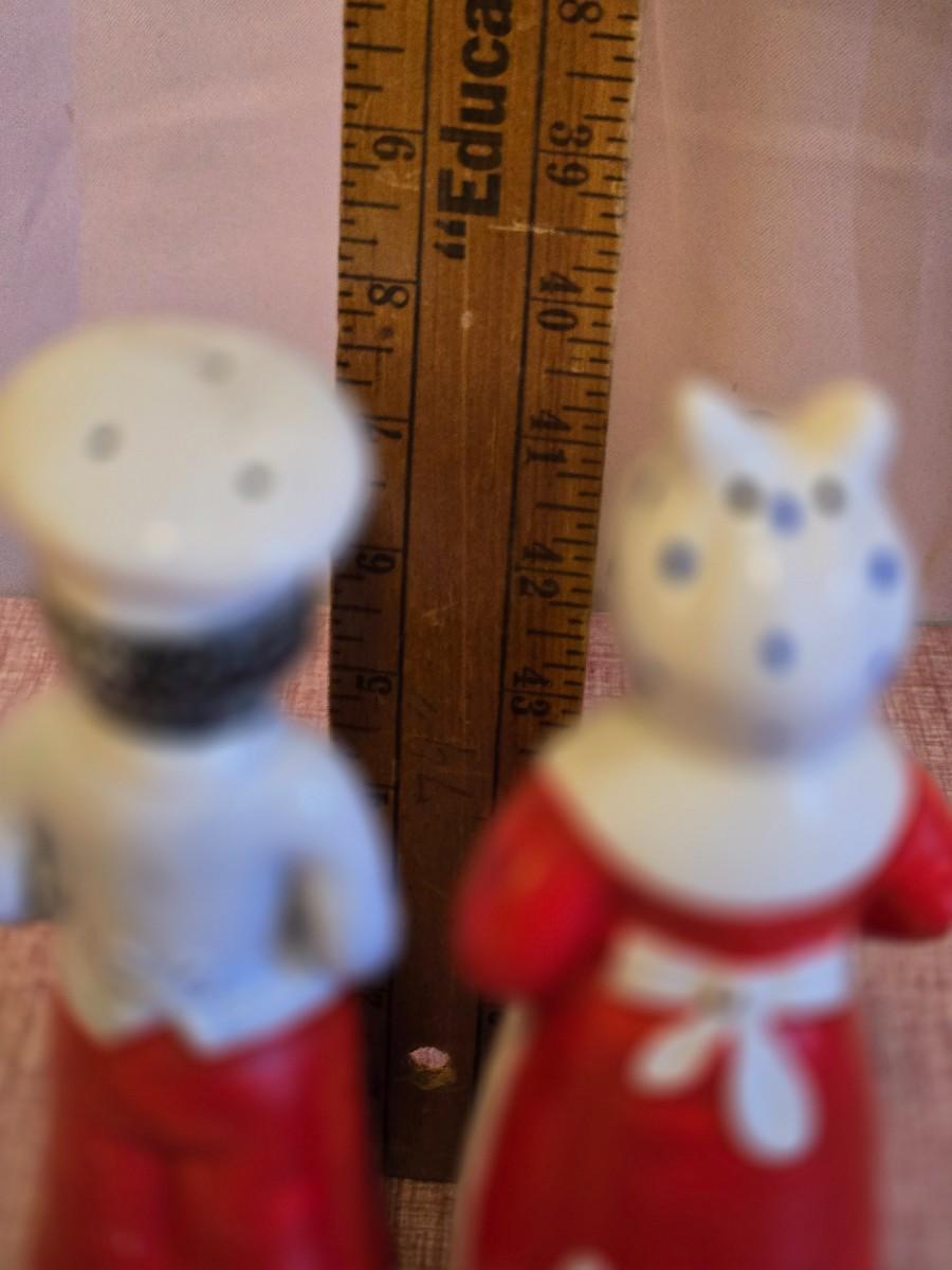 Set of 2 shakers, some paint loss on the back shown in pic.