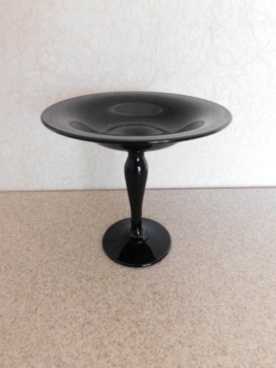 Black Amethyst Glass Pedestal Compote Dish