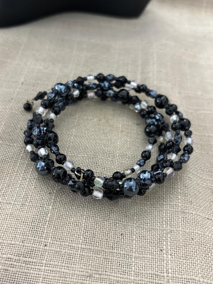 Black and blue beaded wire adjustable bracelet