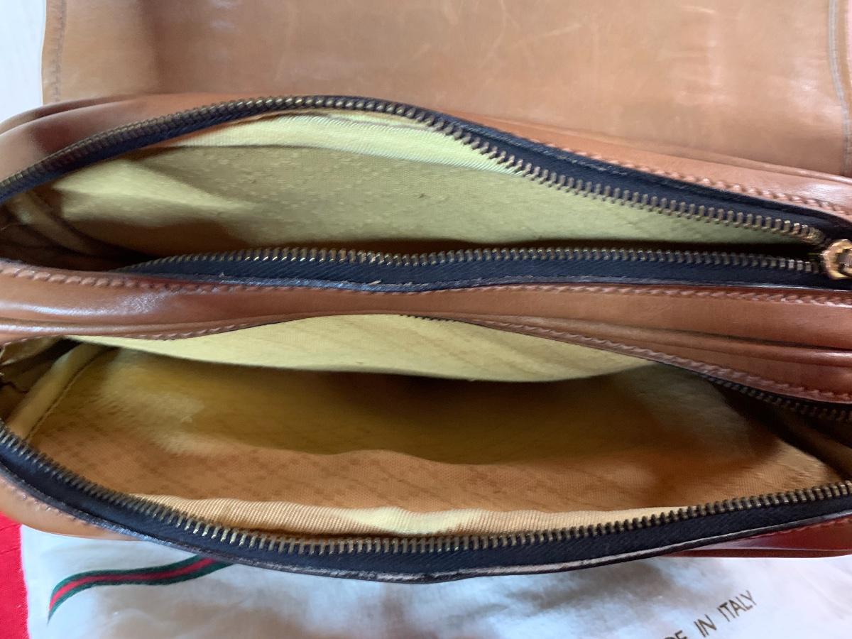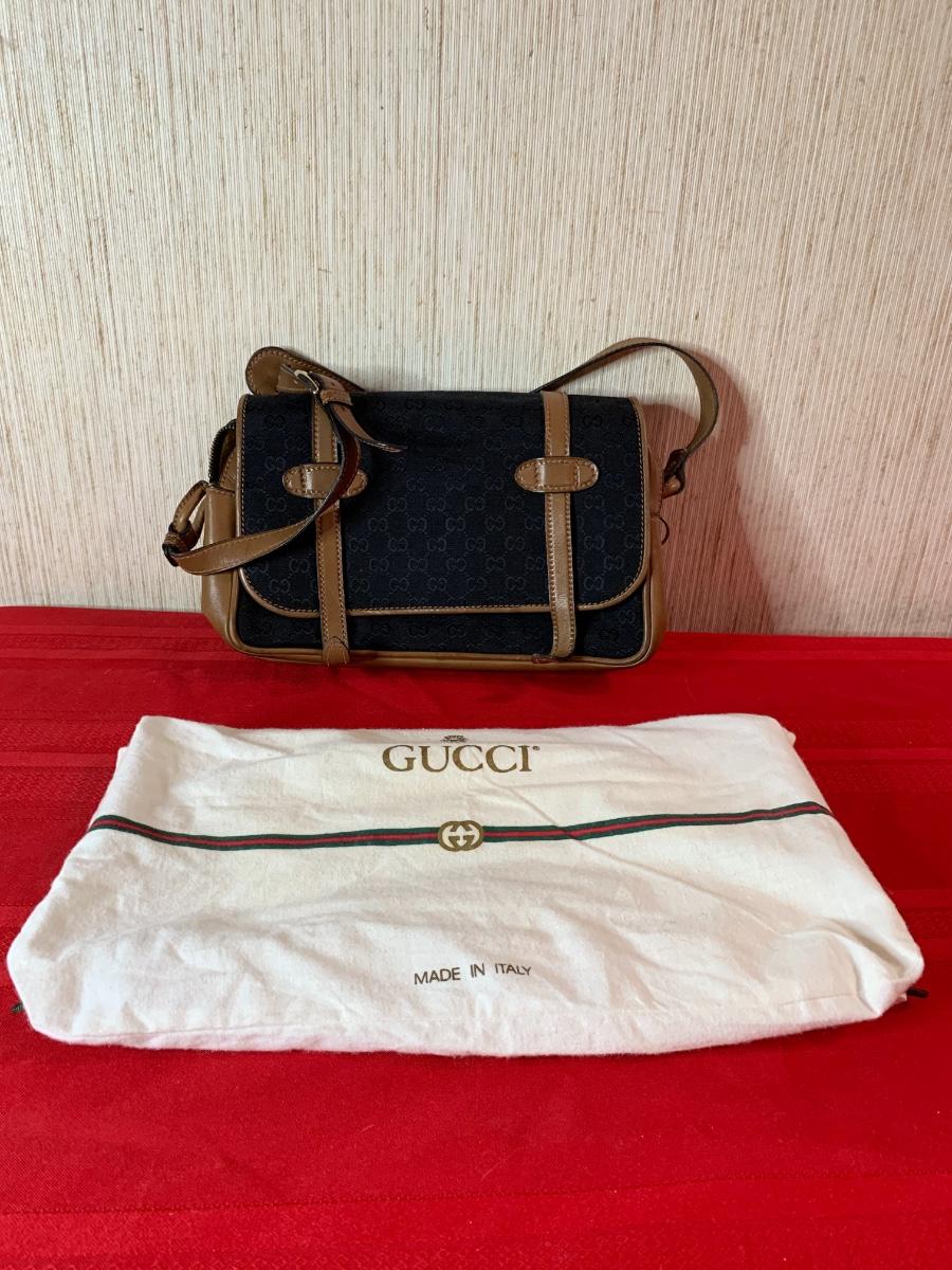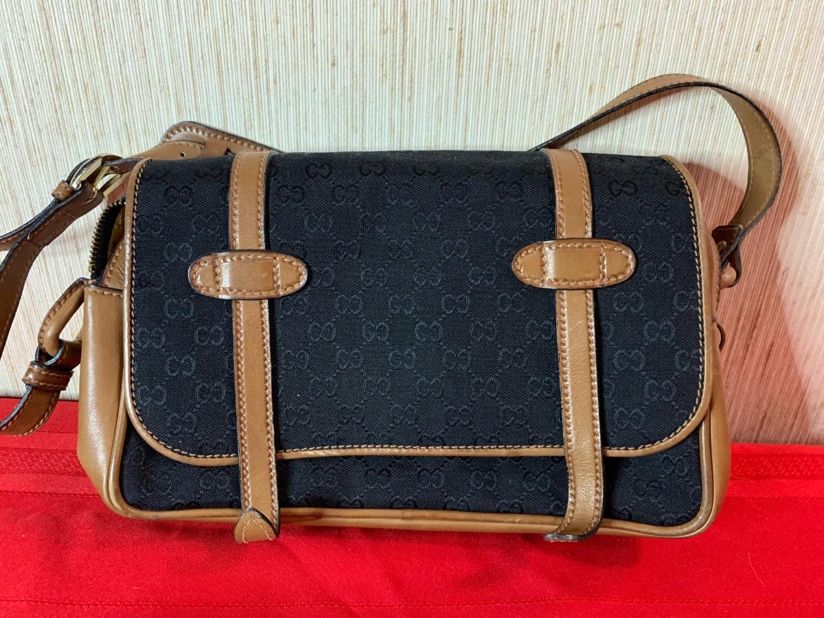 Black with Brown Leather Gucci purse with Lamprom zipper. Purse is in great condition all around. Comes with white Gucci bag.