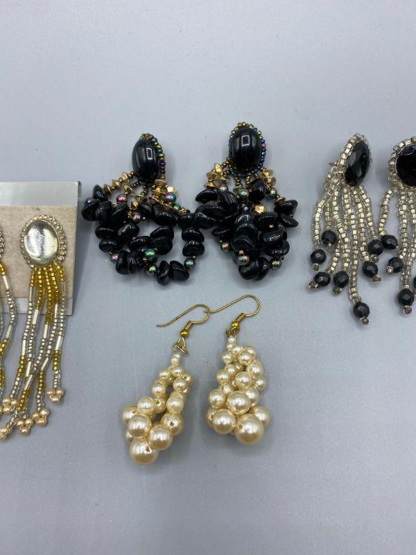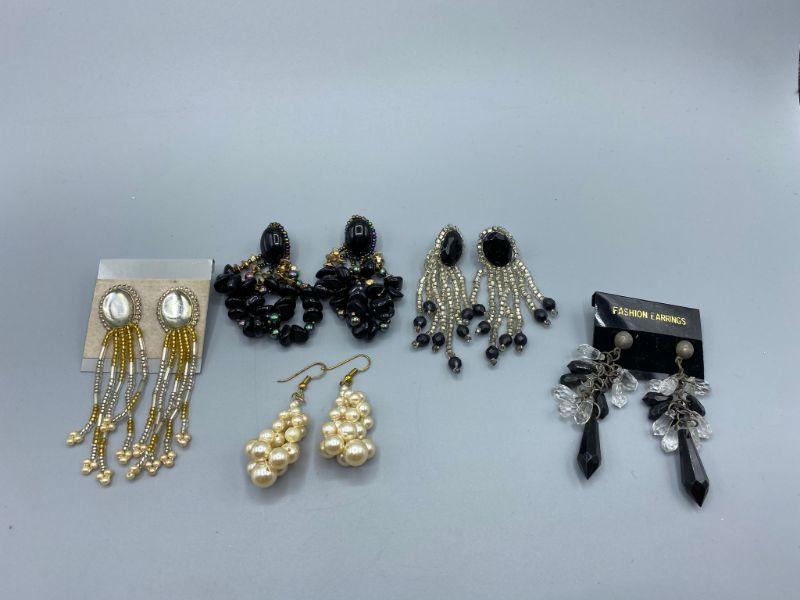 Lot of 5 pairs of black and clear bead earrings. For pierced ears.