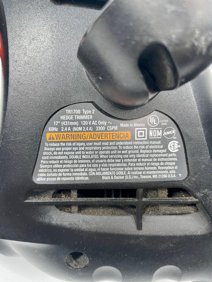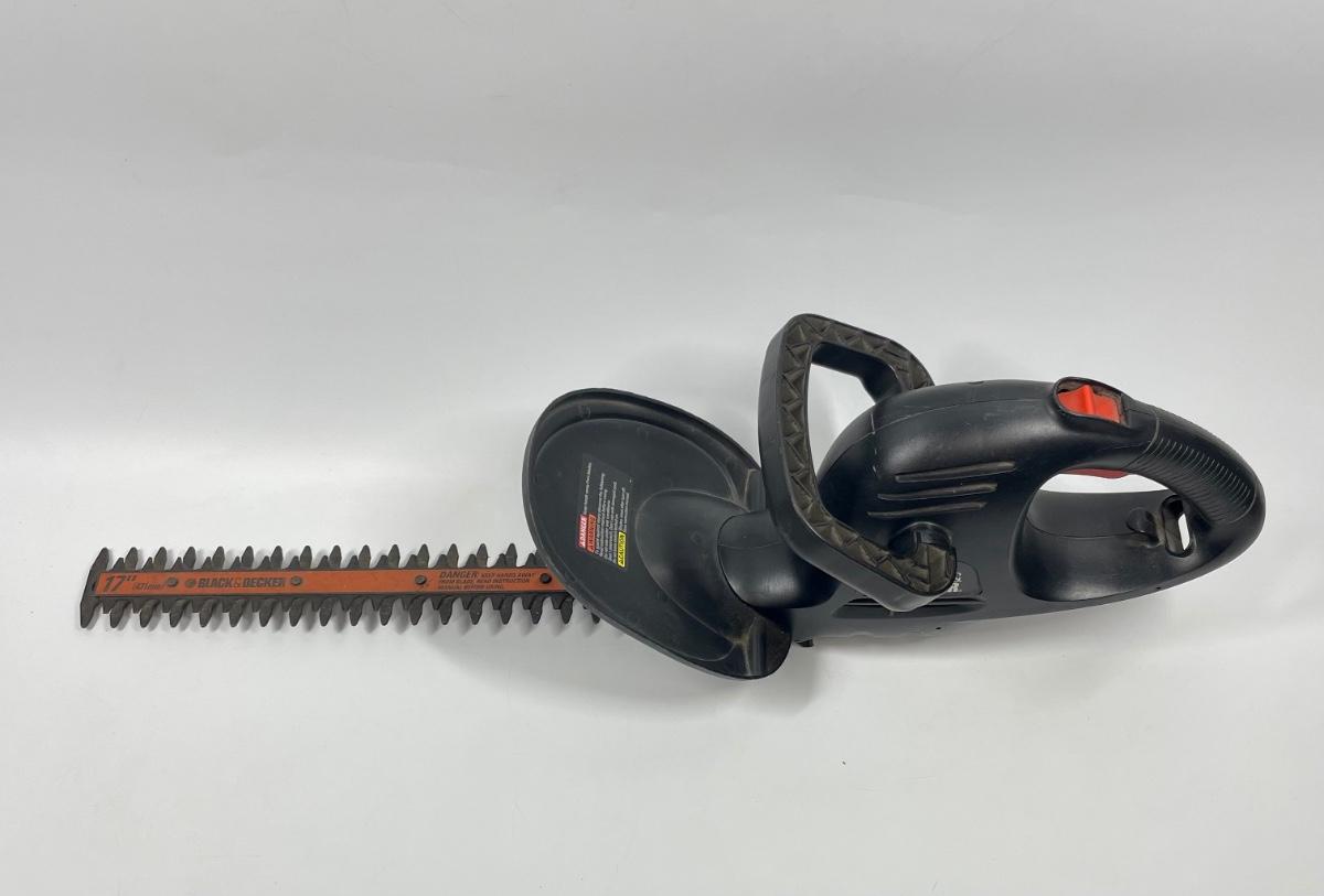 Black and Decker 17” Electric Hedge Trimmer. Tested, works as expected. Good used condition.