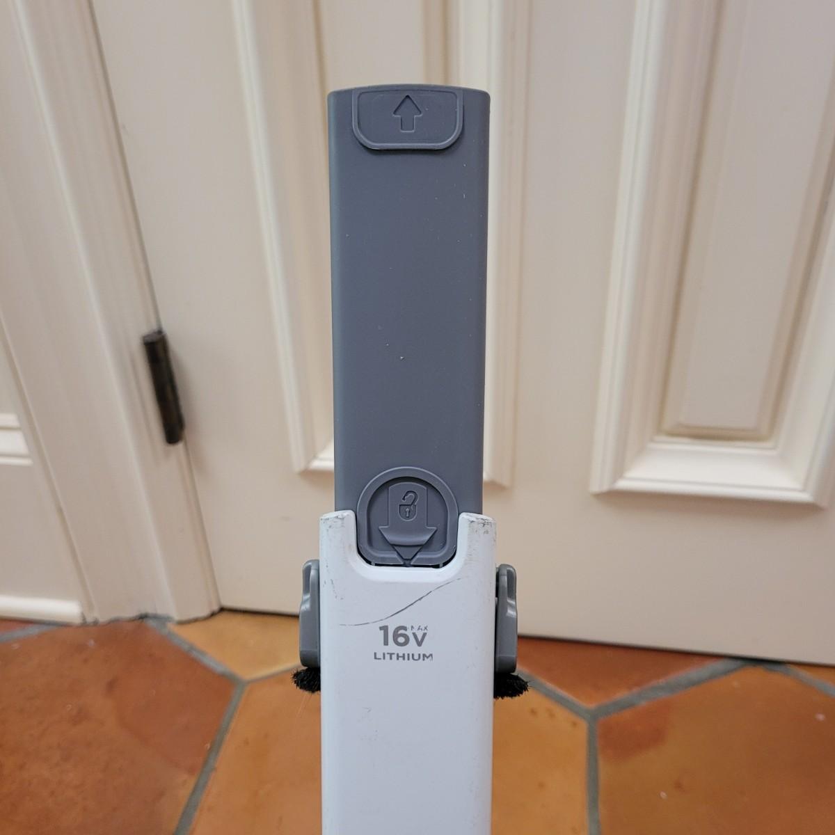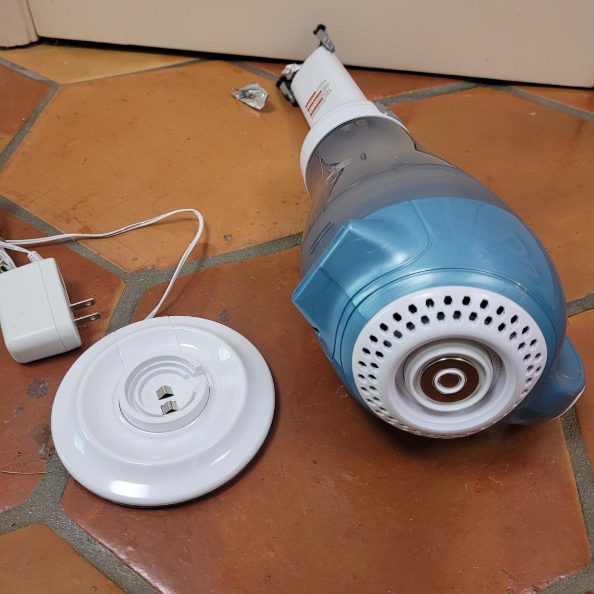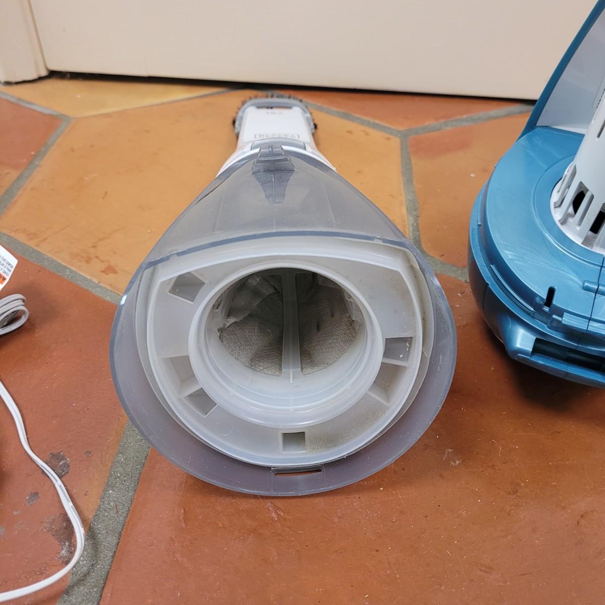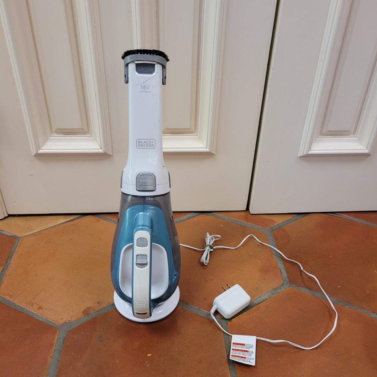 This Black and Decker Dustbuster has a 16V lithium battery with an extendable end to get into hard to reach spaces. Machine powered on when plugged in. Measures approximately 18” long. Shipping available.