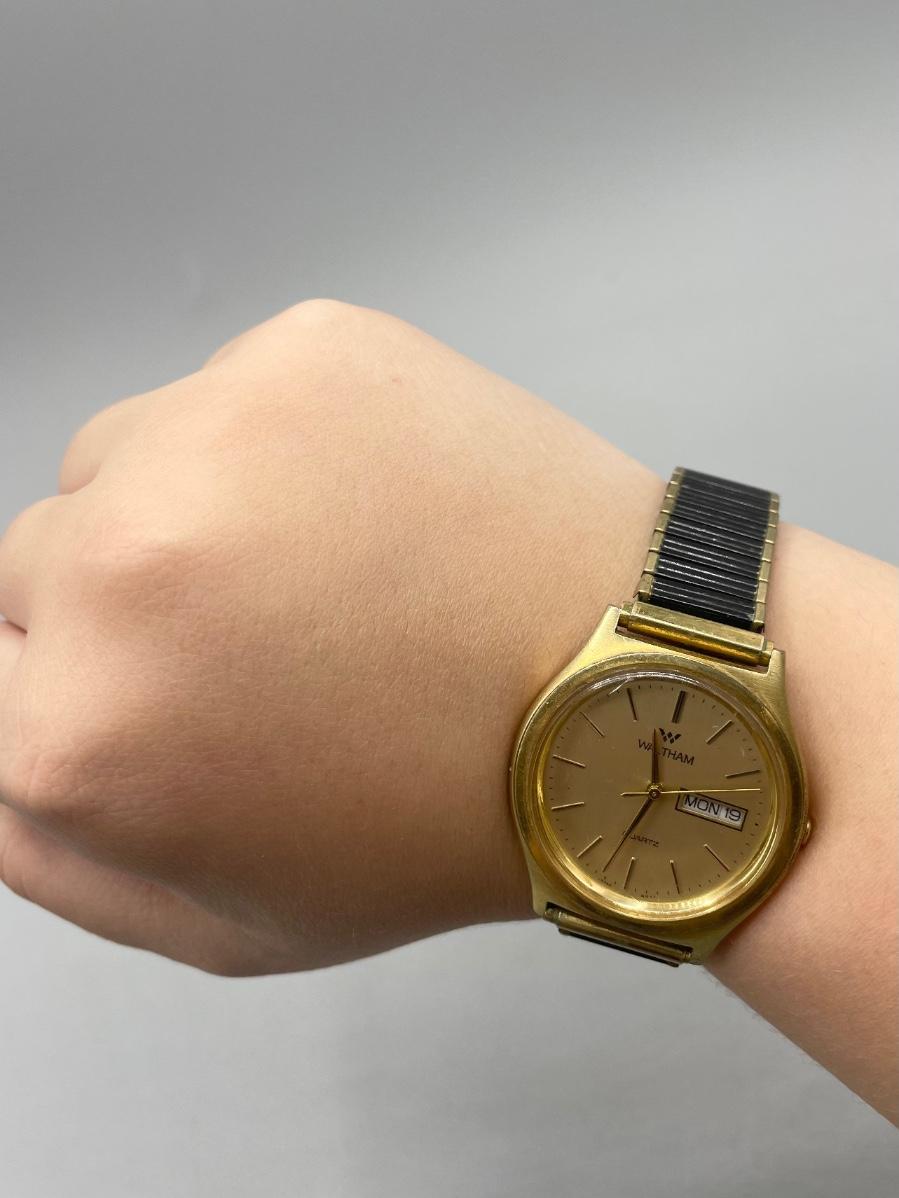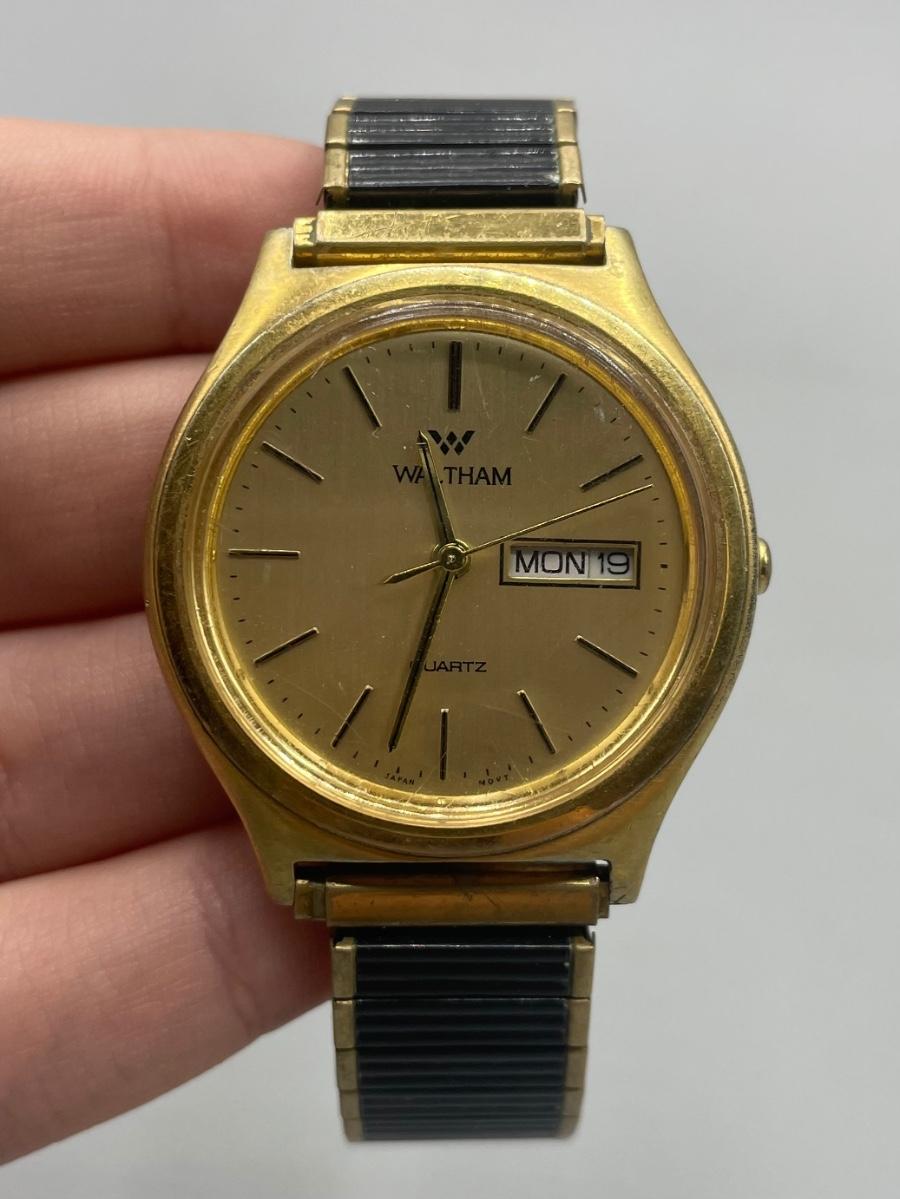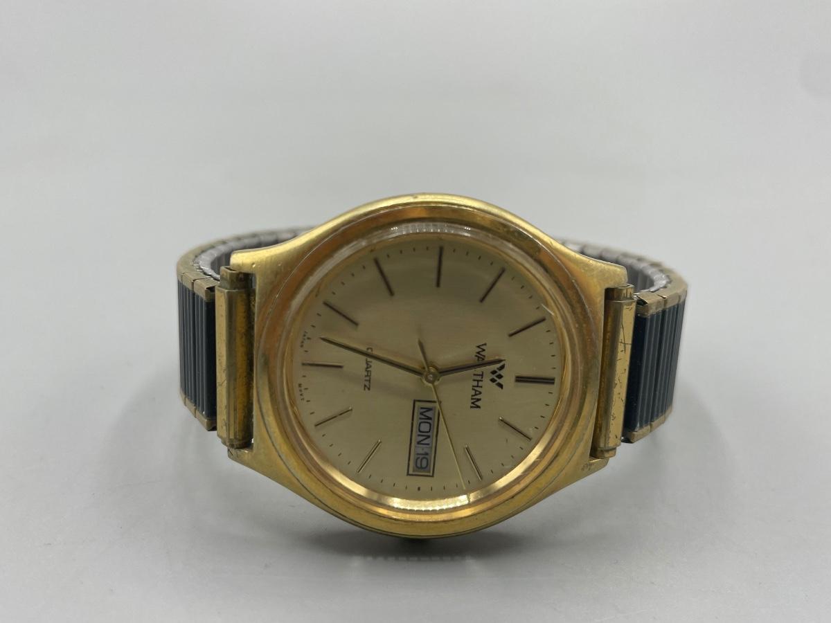 Ratro Waltham Black & Gold Tone Wristwatch Day & Date