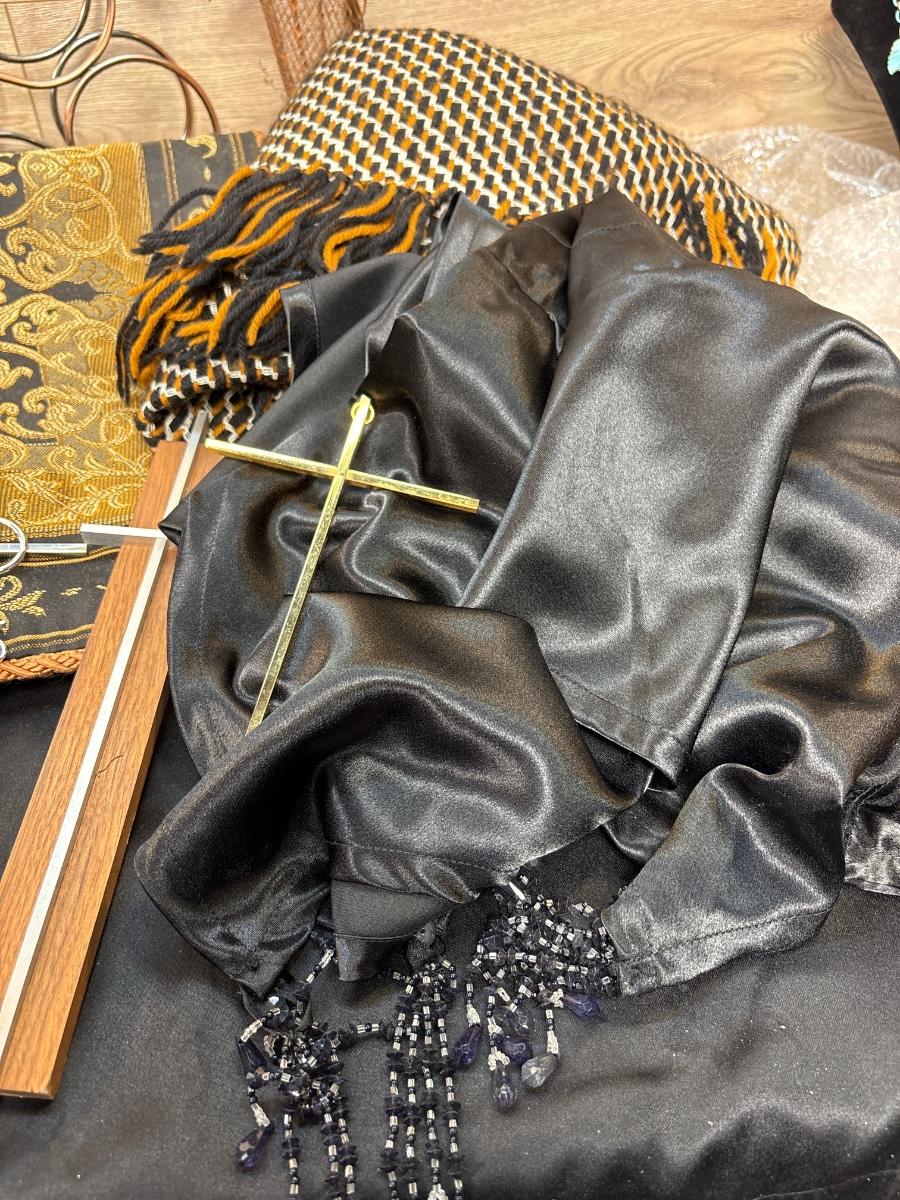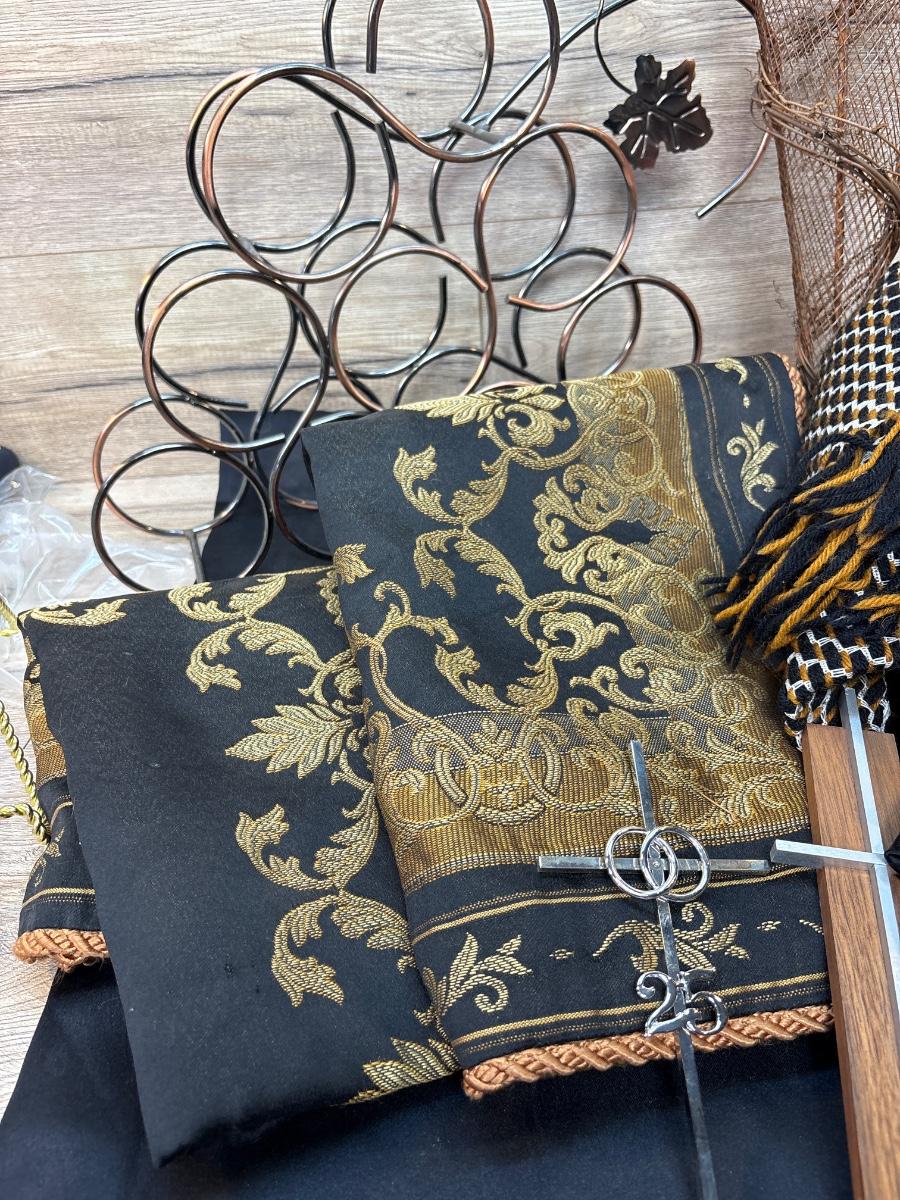 Pillow covers, afghan, black curtains with beeds