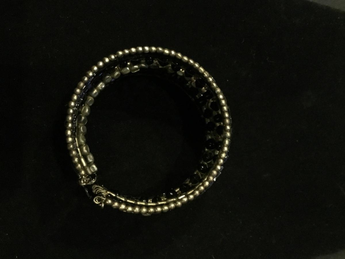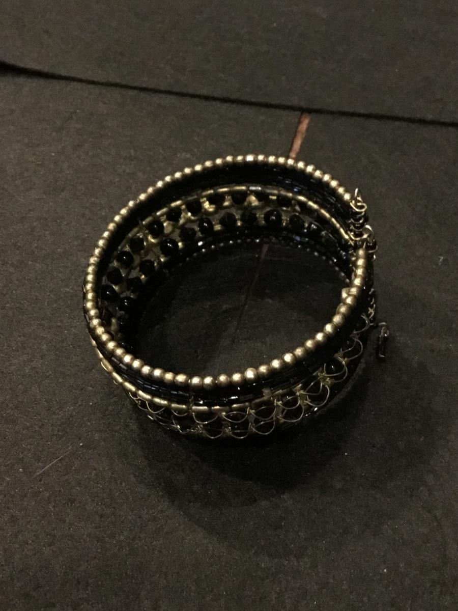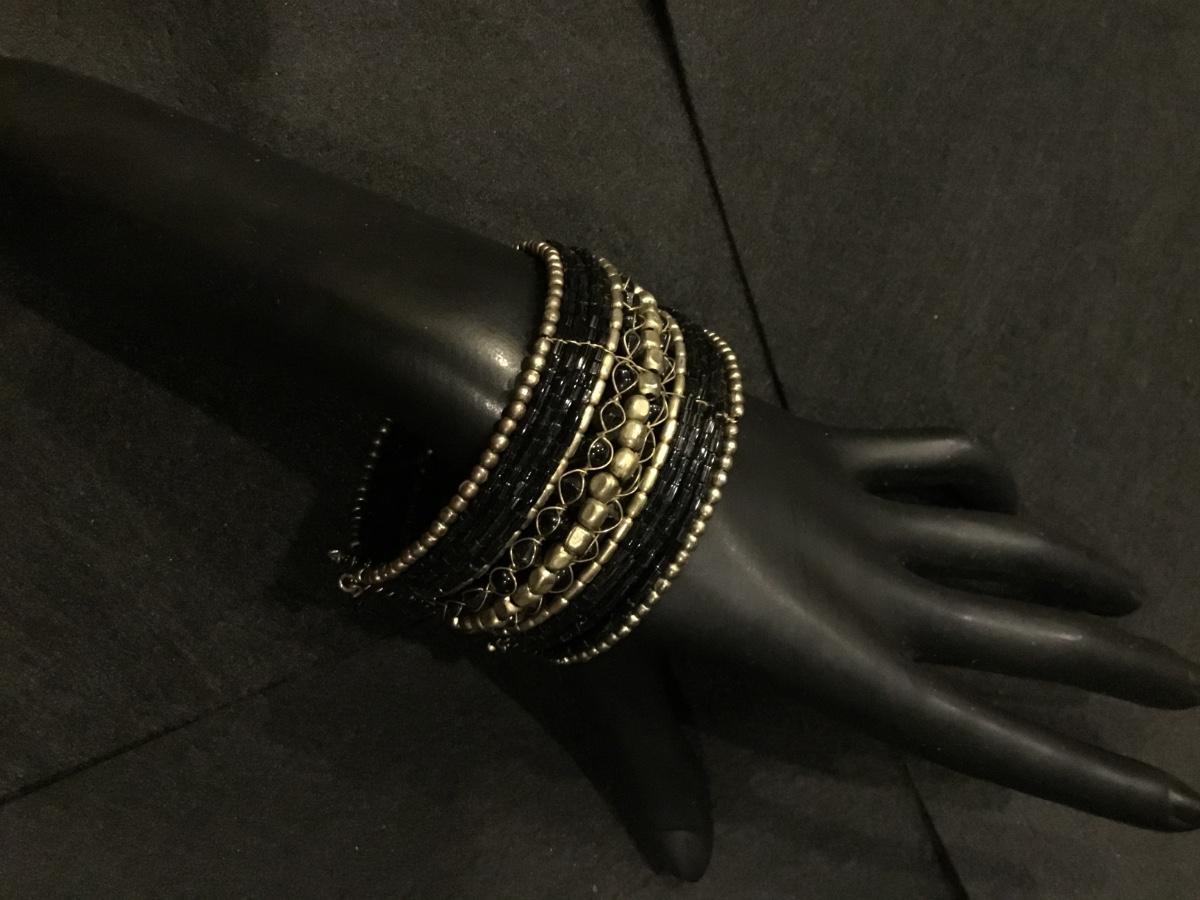 Black and gold tone wire beaded fashion bracelet