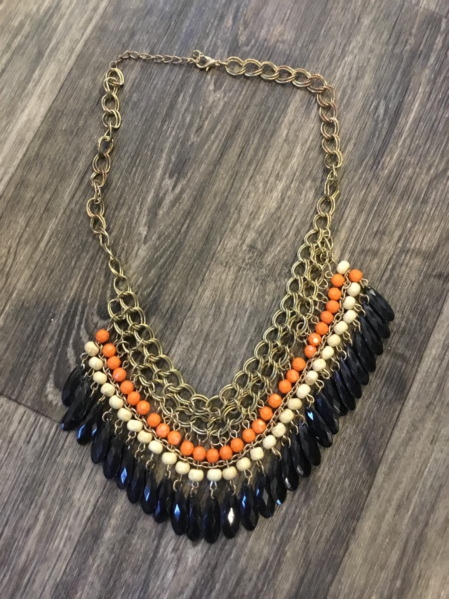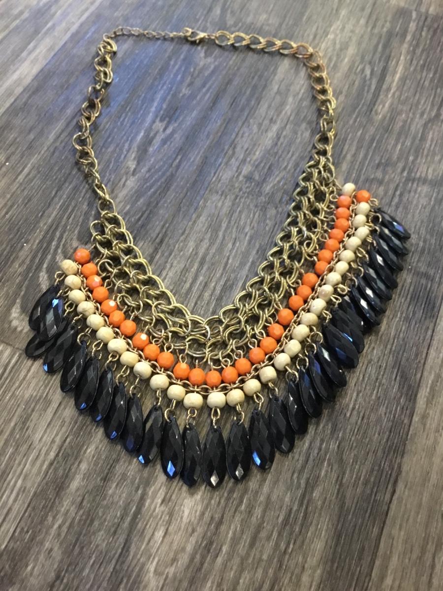 Black and orange gold tome statement collar necklace