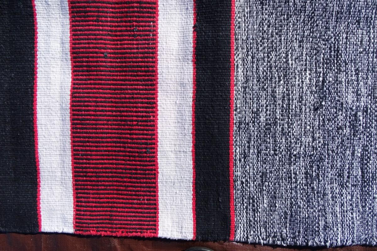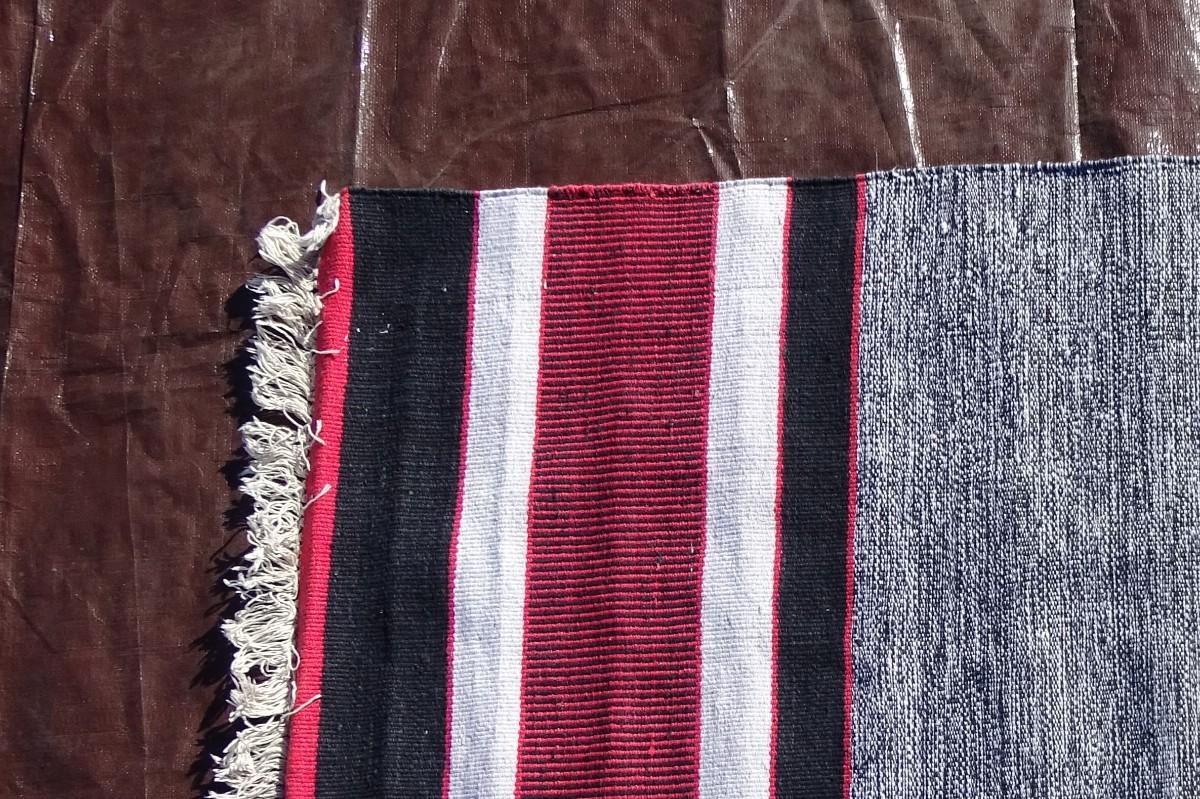 Black and red wool Turkish rug; flat weave, hand made