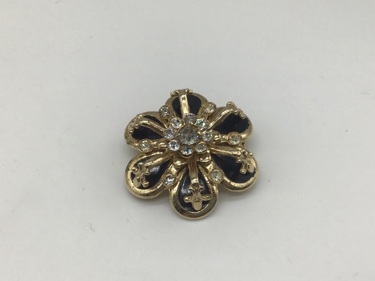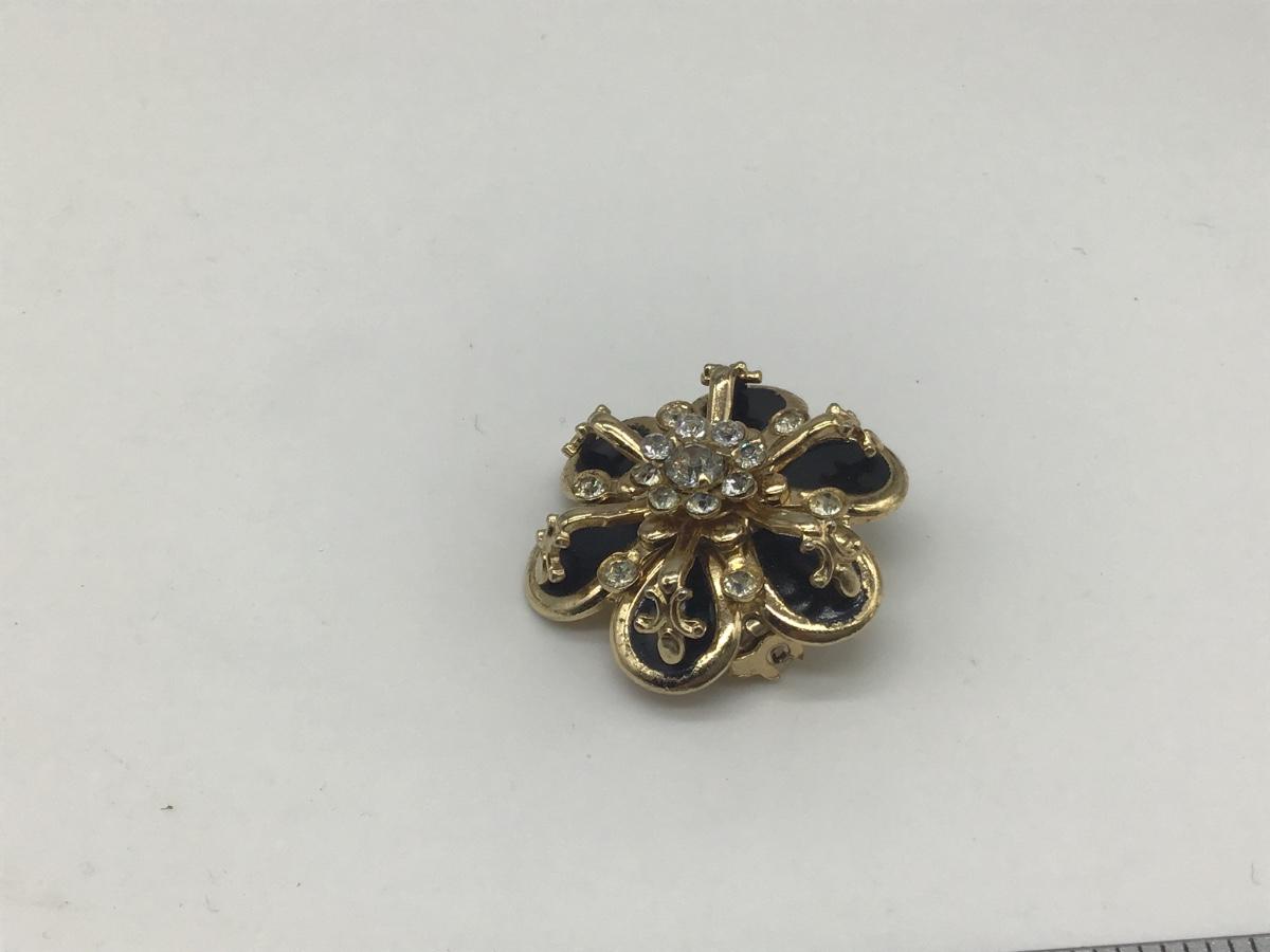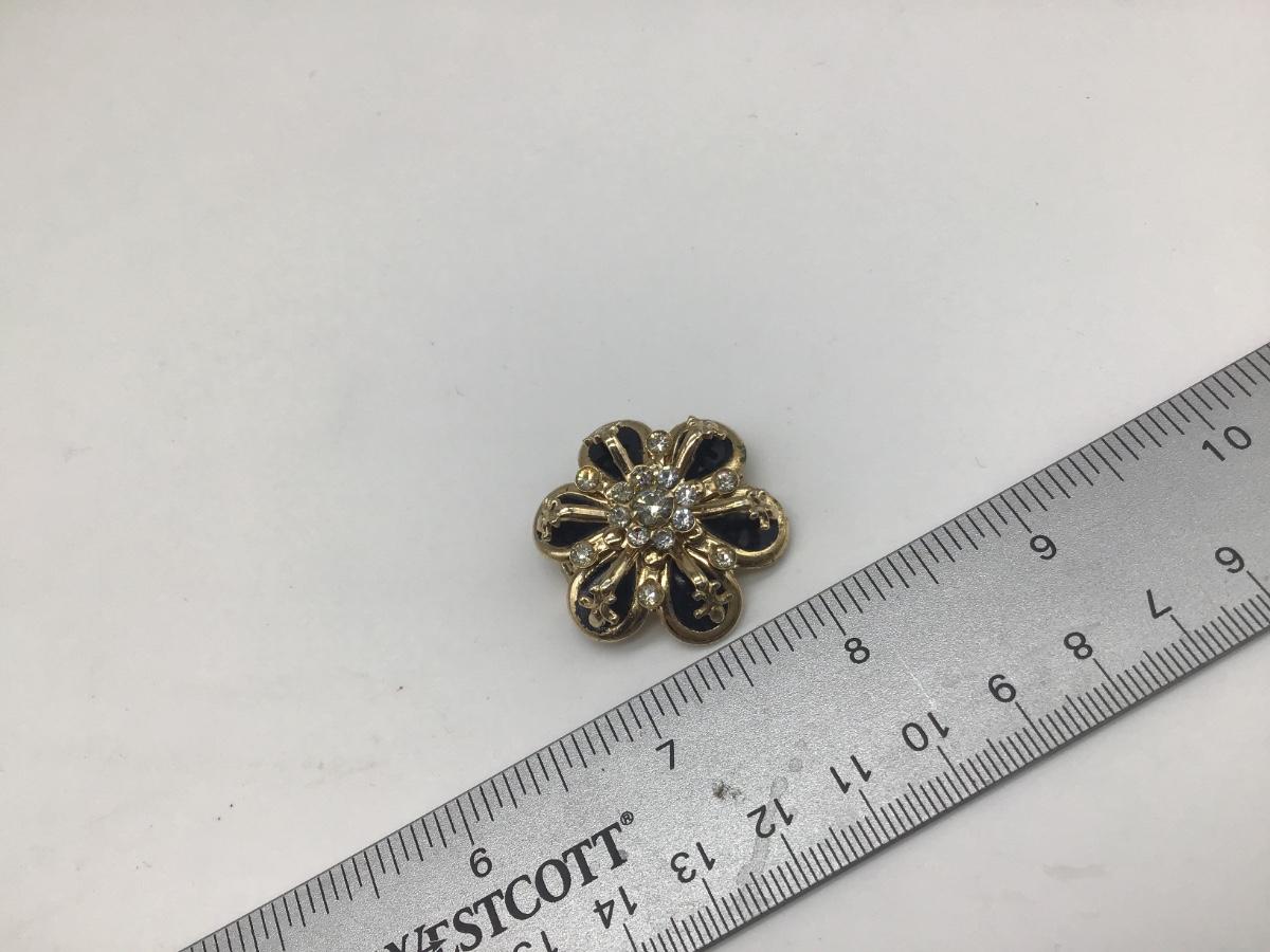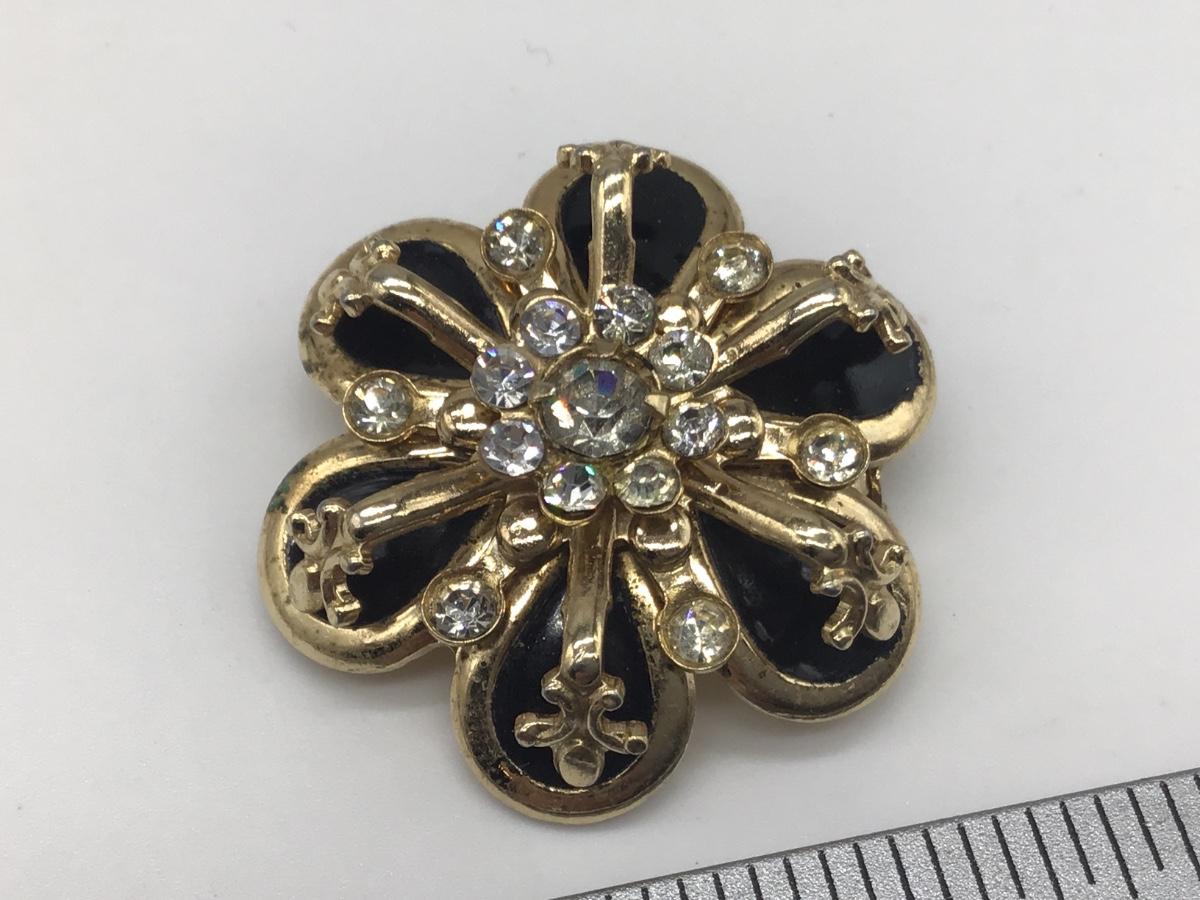 Black and Rhinestone Gold Tone Brooch