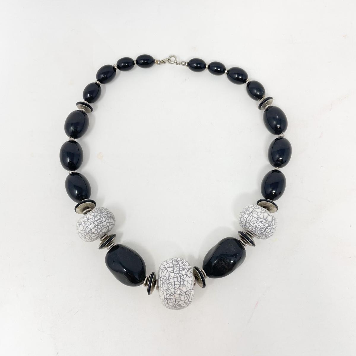BLACK AND SILVER BEADED CHOKER NECKLACE