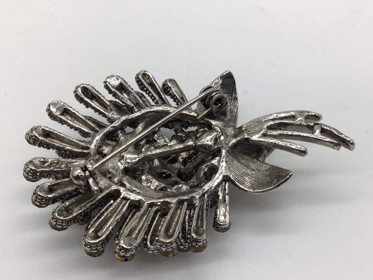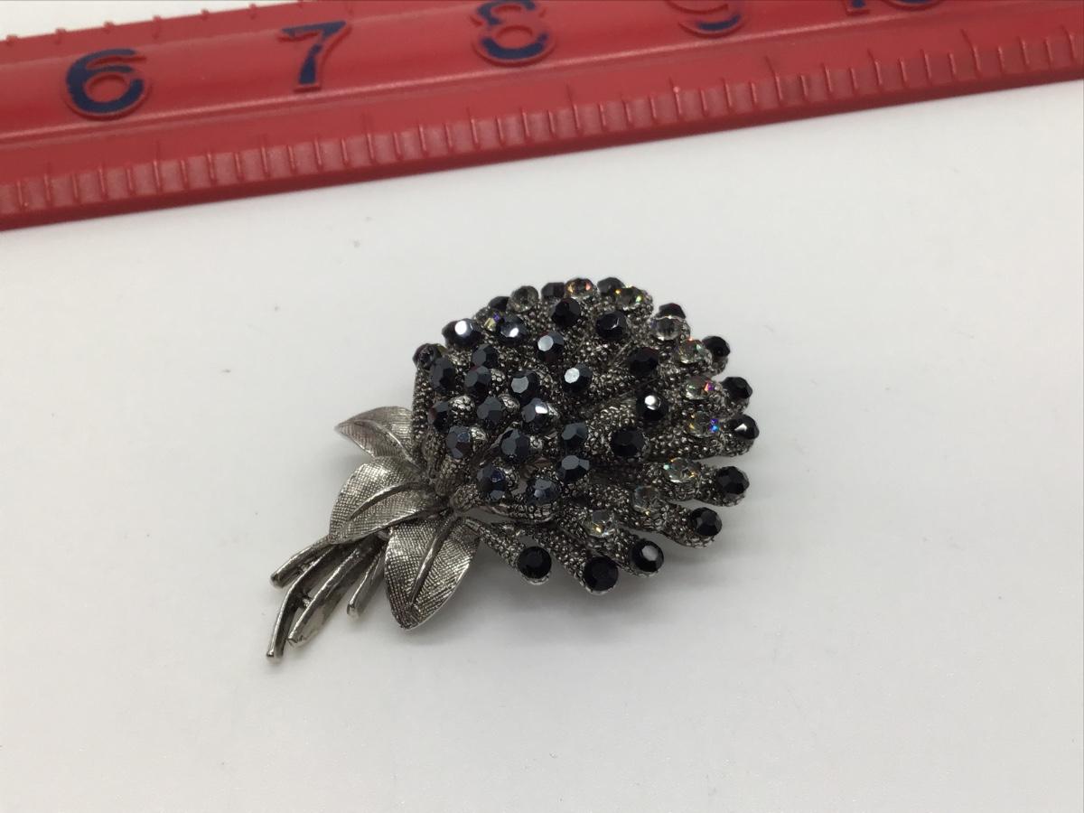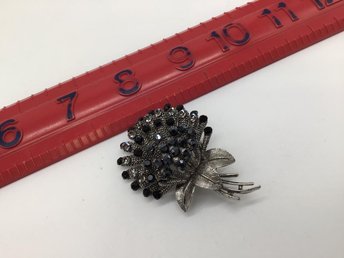 Black and Silver Tone Flower Brooch