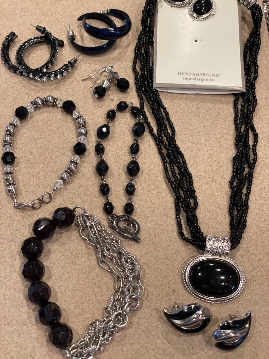 Black and silver tone jewelry