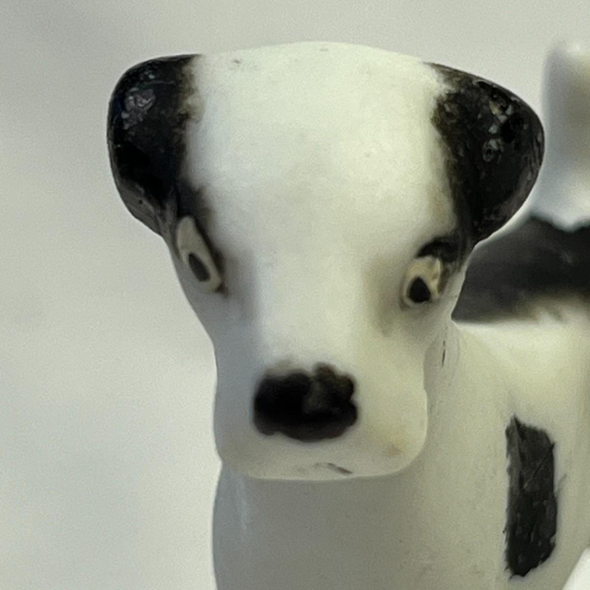 BLACK AND WHITE BISQUE DOG FIGURINED