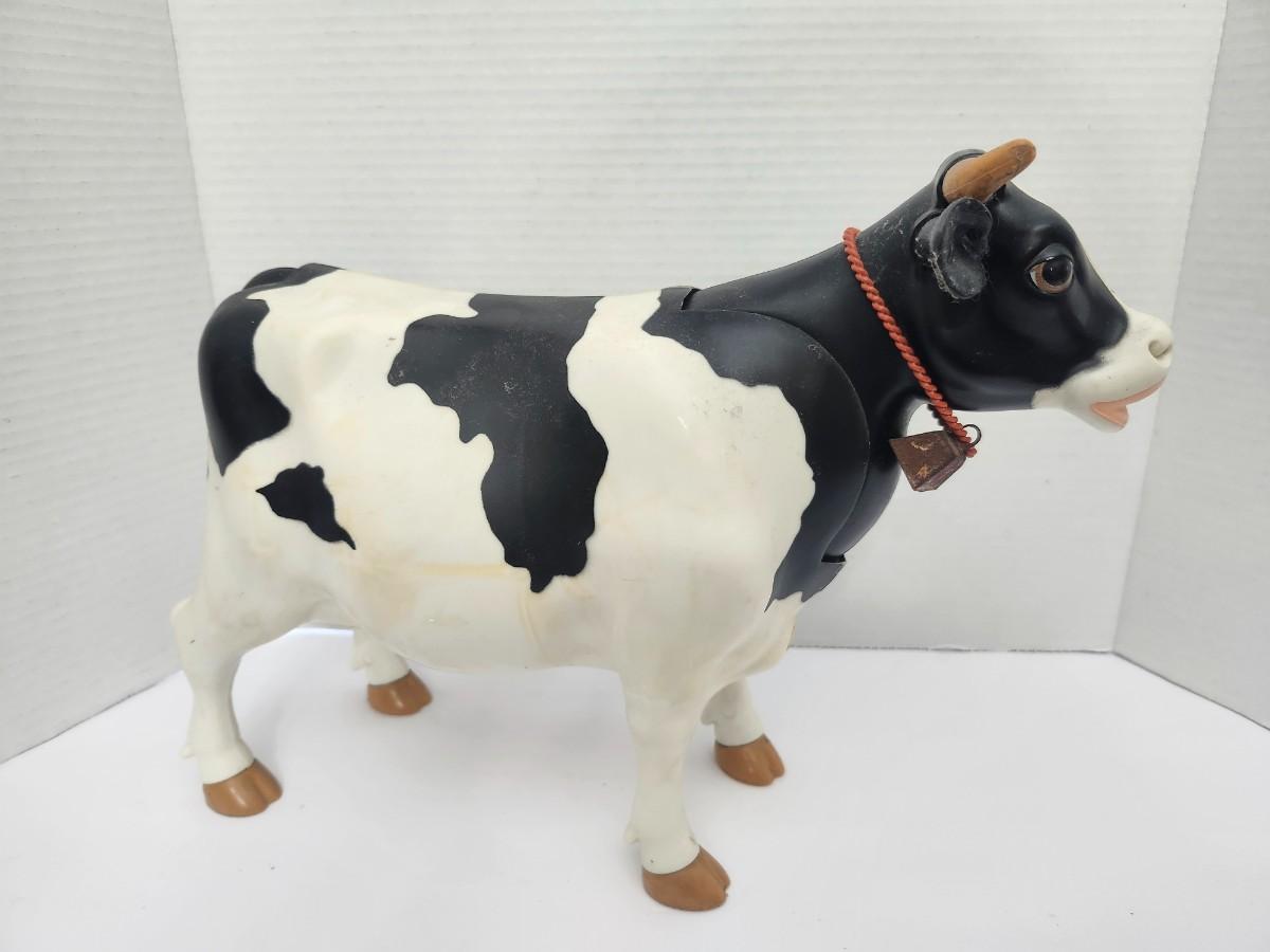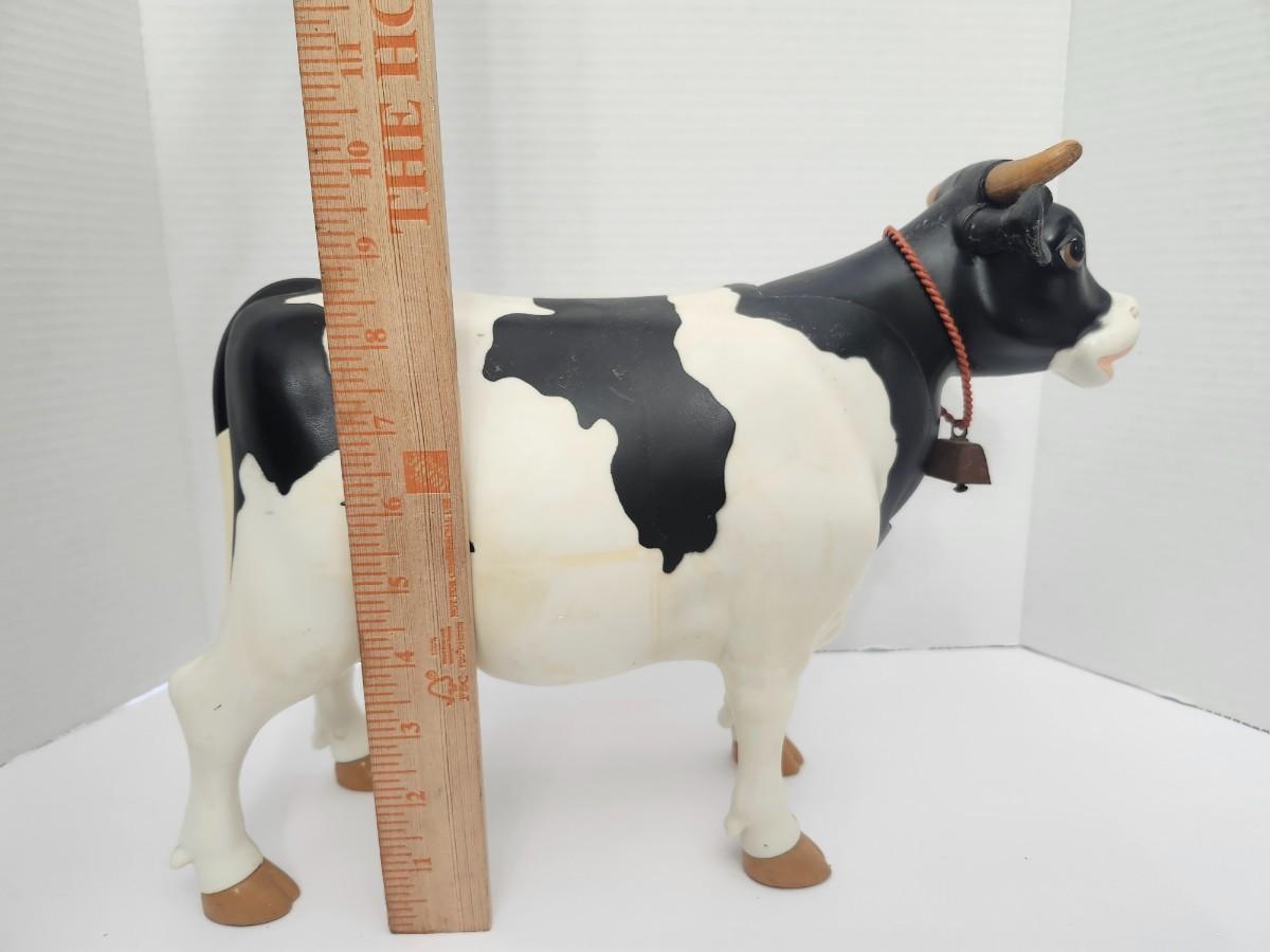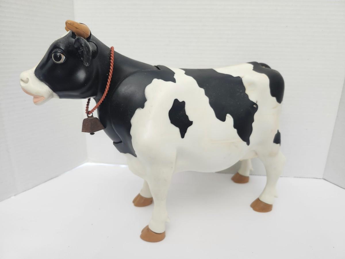 Black and White Cow Figurine with Bell Farm Animal Decor Plastic Figure