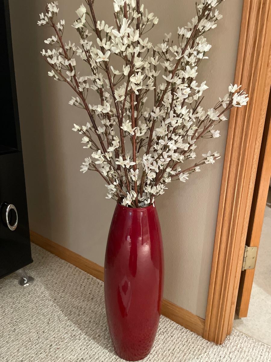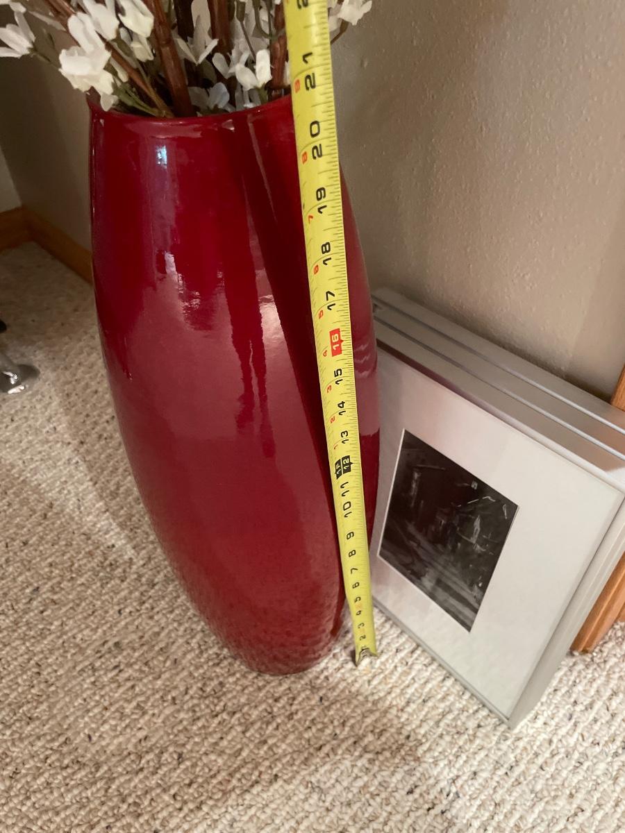 Black and white wart with red vase