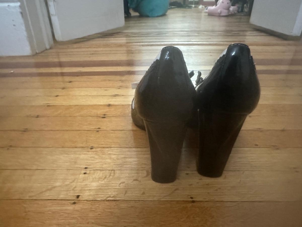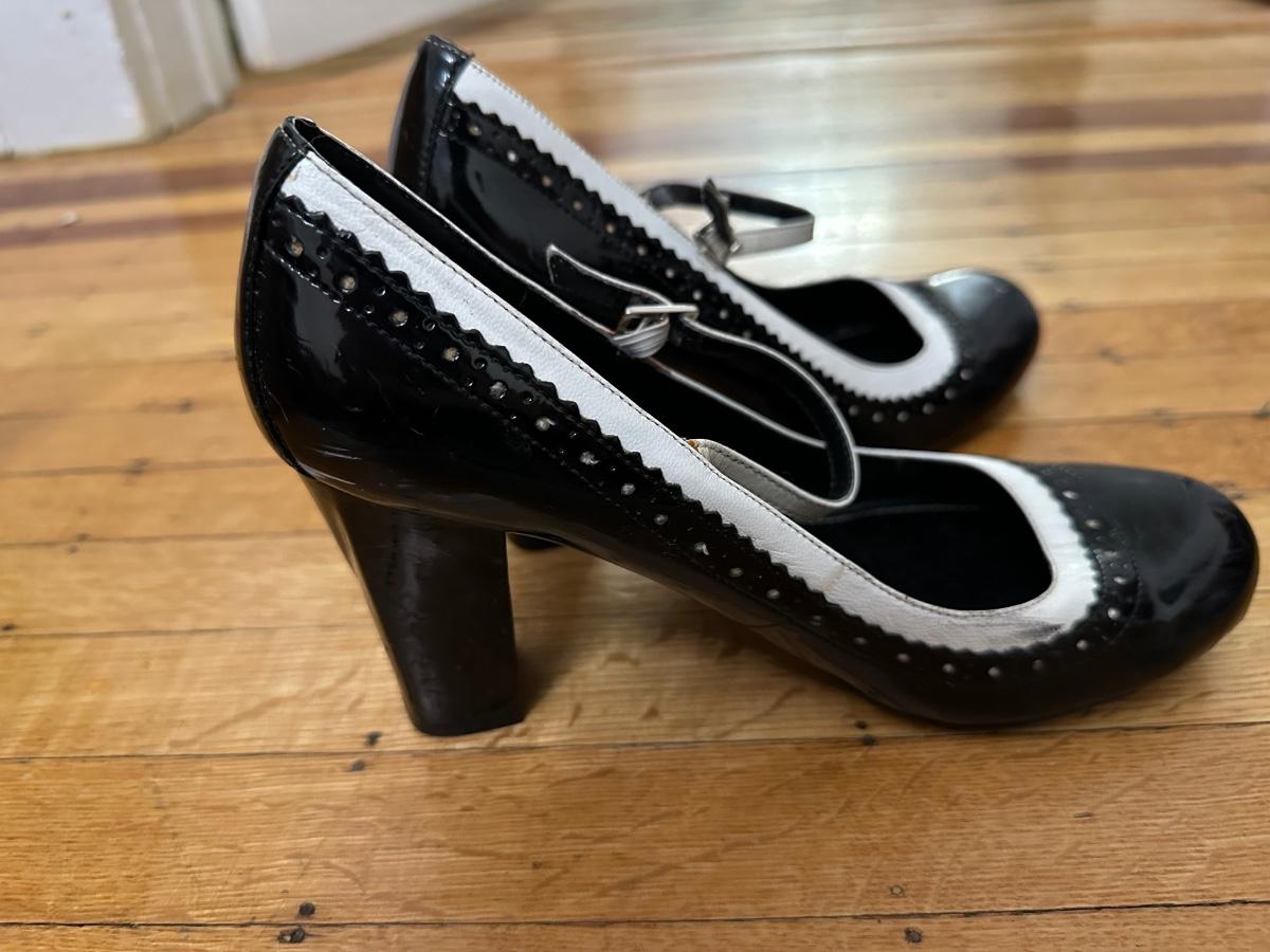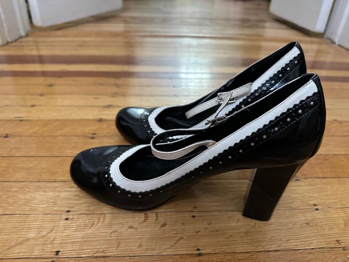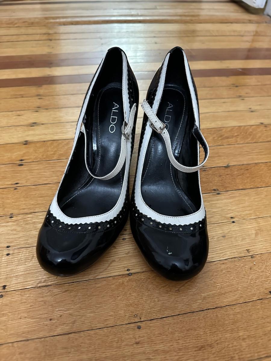 Black and white patent leather Aldo Mary Jane heels