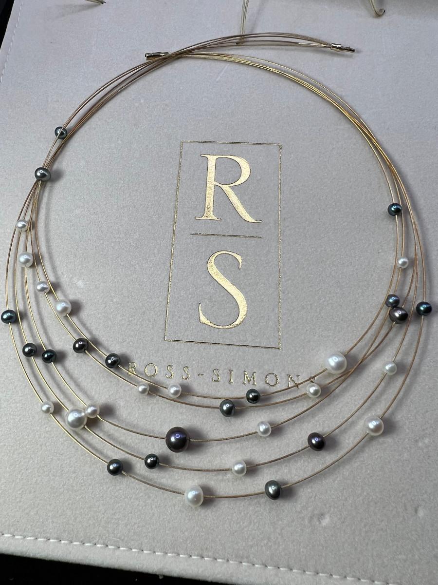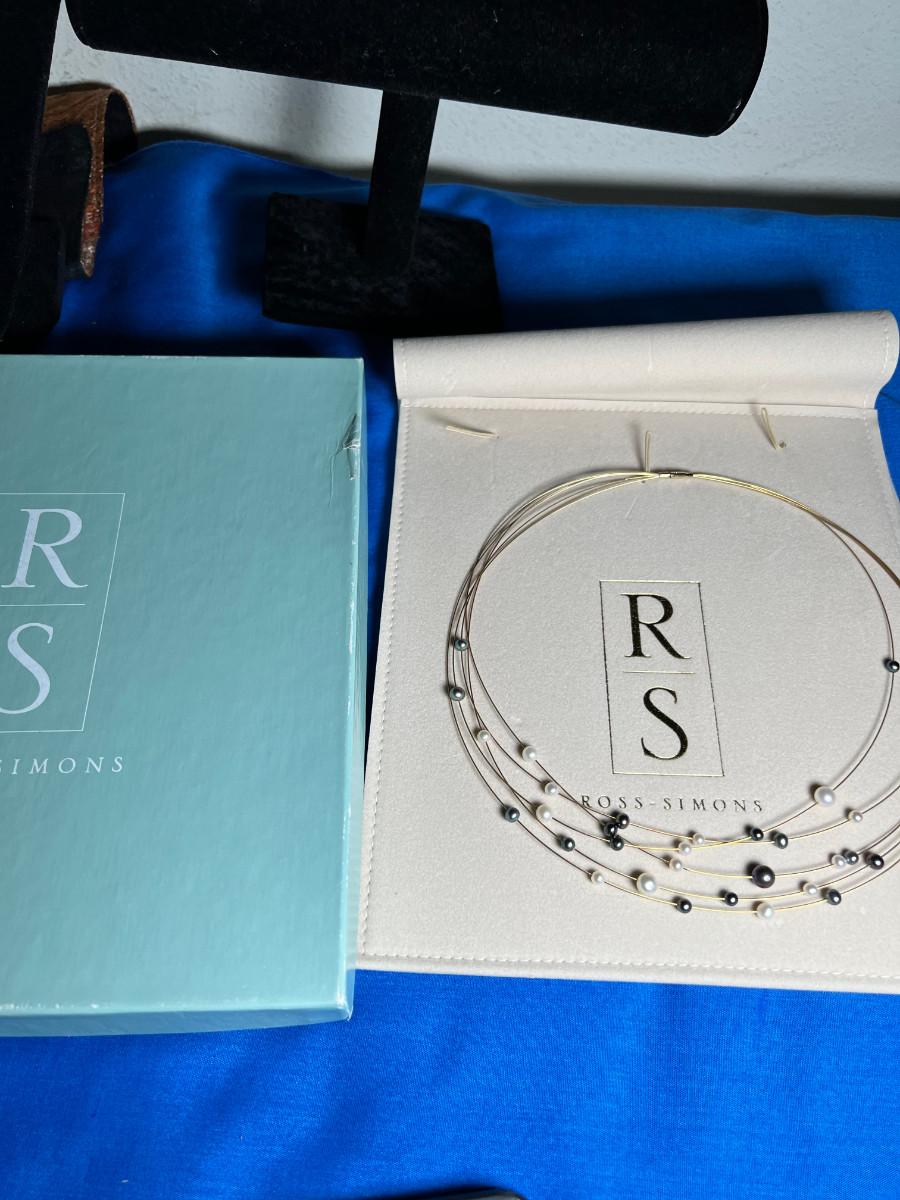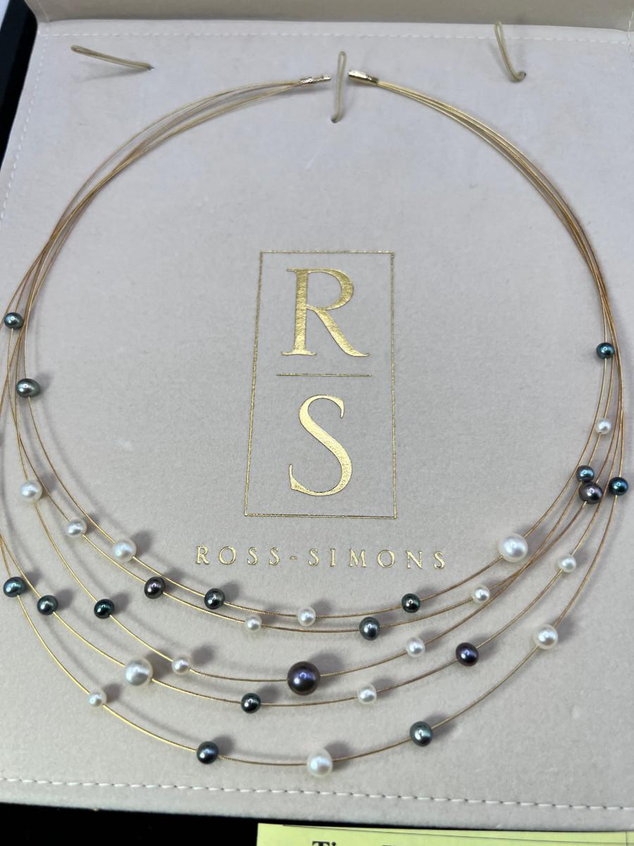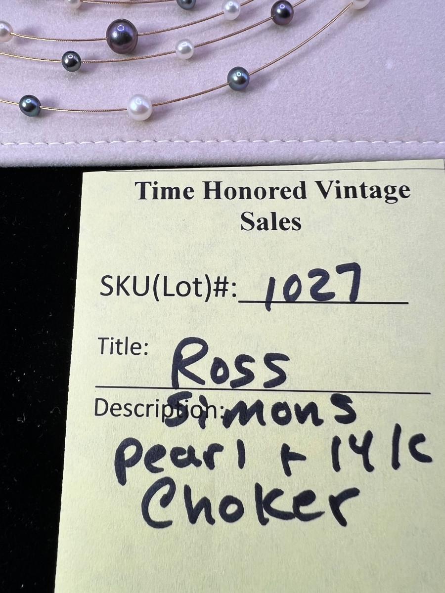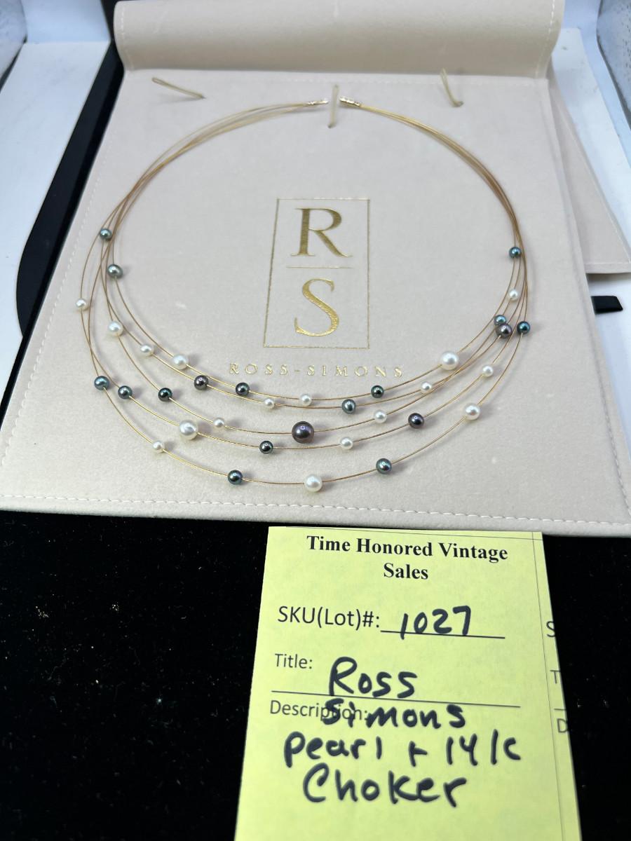 Unmarked, displayed as found, not verified Ross/ Simmons brand., unmarked as far as Metal content, maybe 14K Gold Filled , or Gold Plated. Could be 14K I have not tested and it is unmarked.